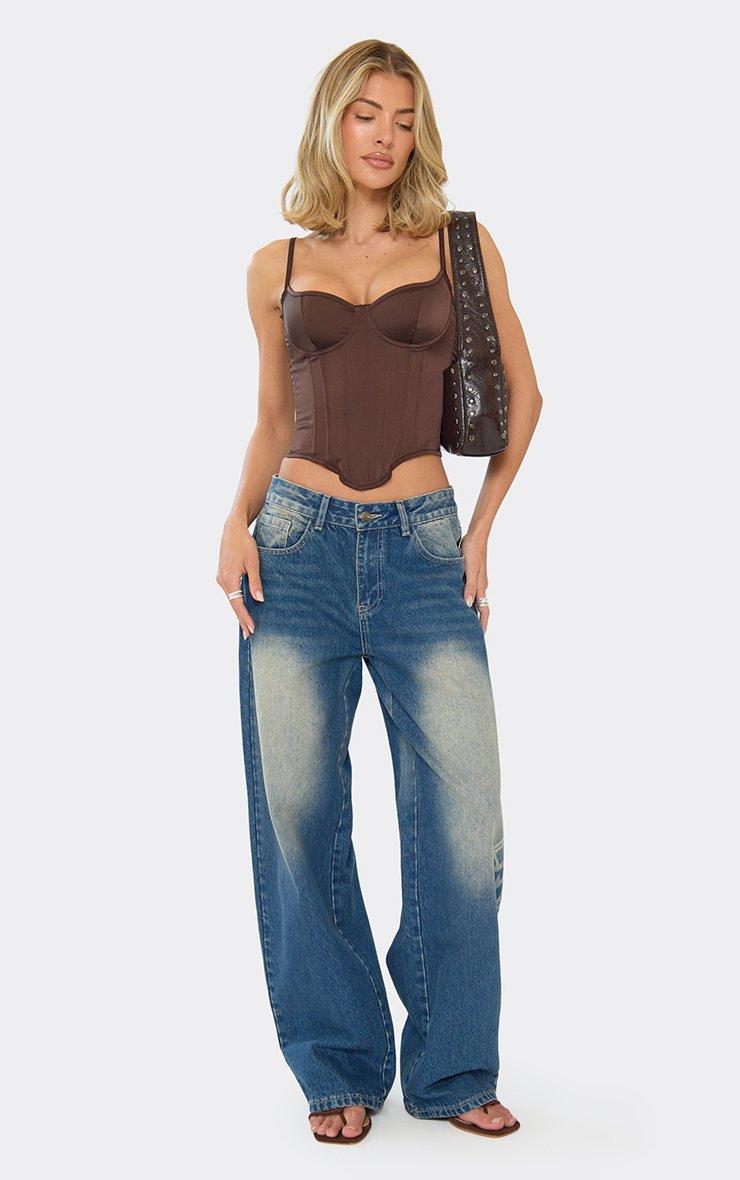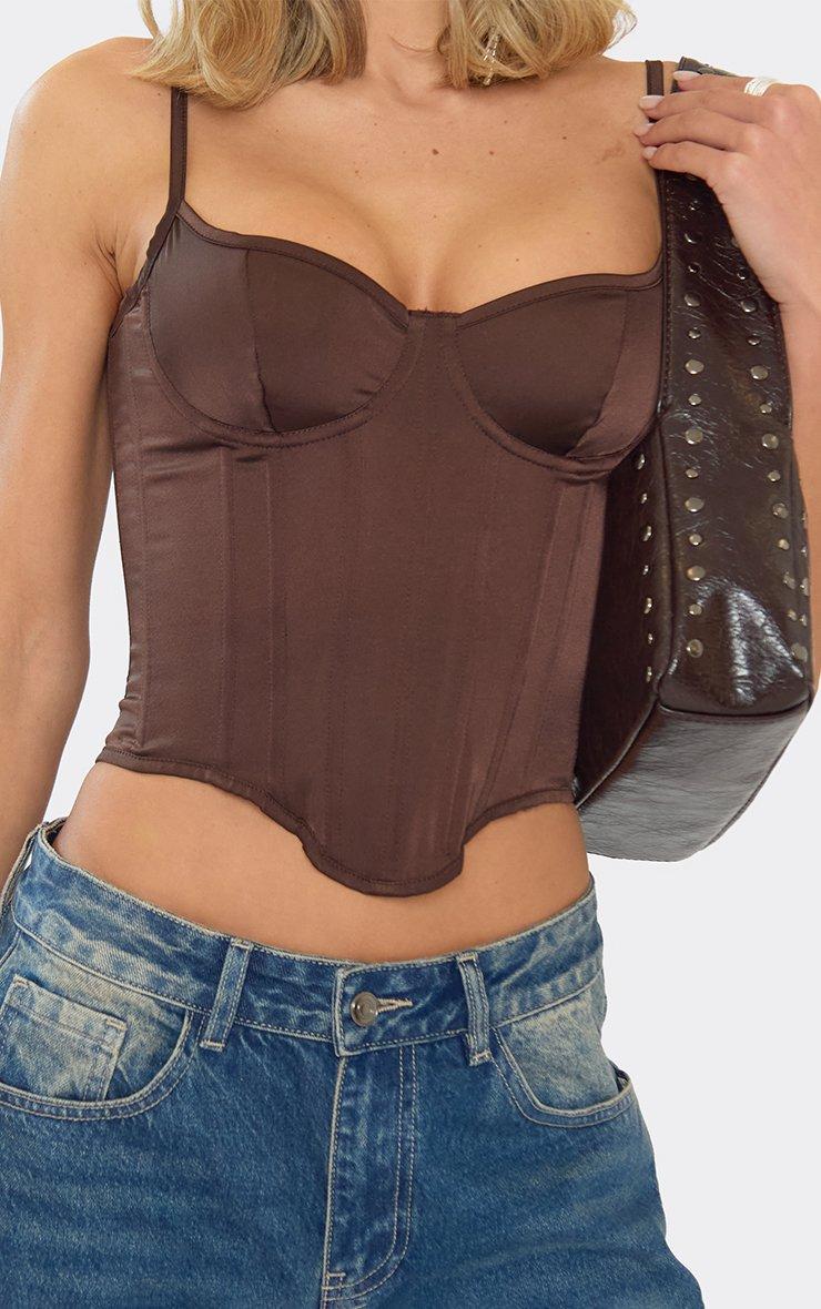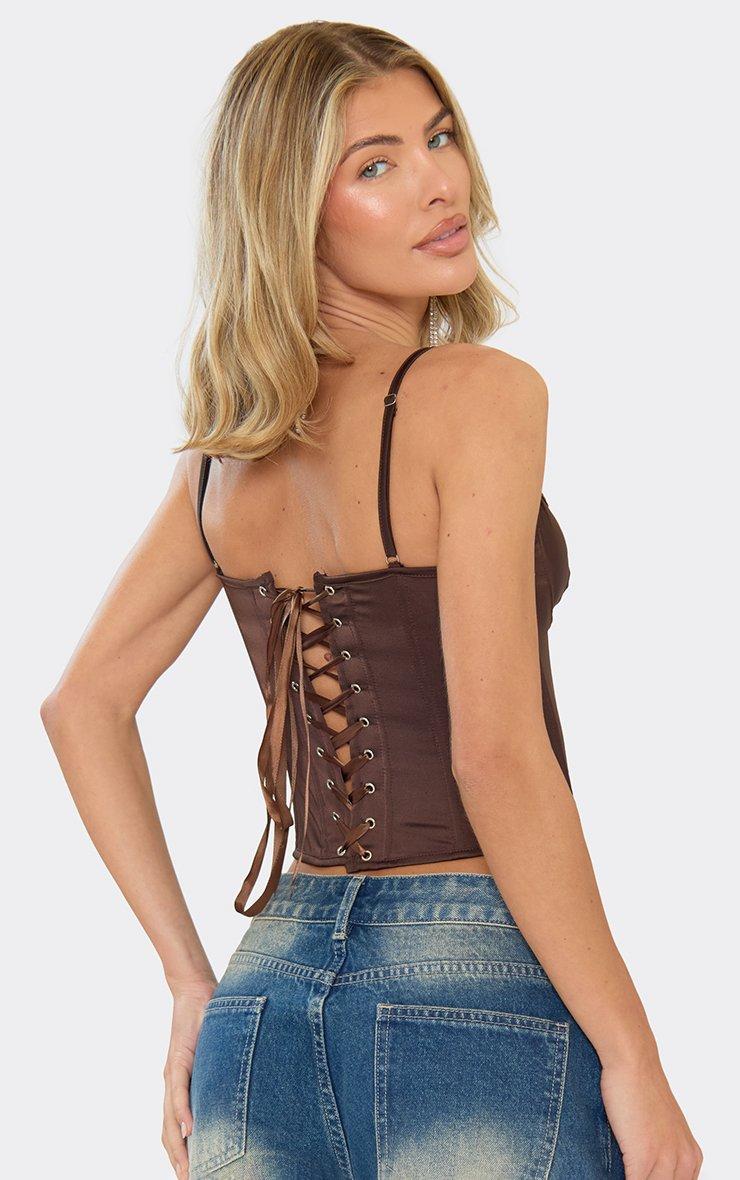 Strappy Tie Lace Back Corset Top In Brown Satin