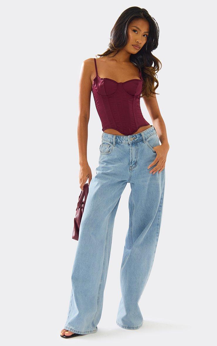 Strappy Hook And Eye Corset Top In Burgundy Velvet Lace