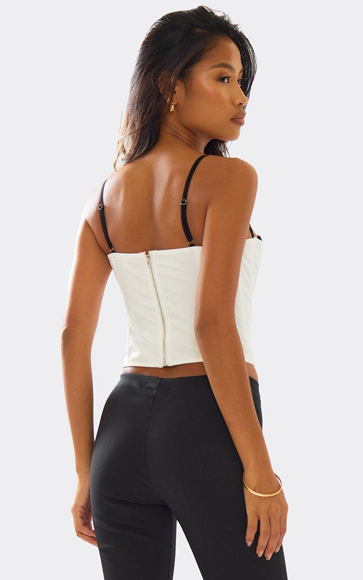 Strappy Contrast Trim Bust Detail Corset Top In White