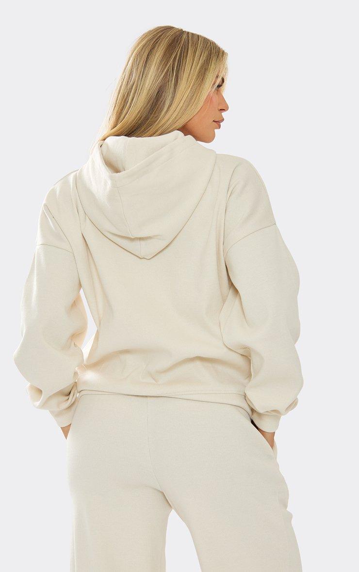 Long Sleeve Zip Up Graphic Detail Hoodie In Cream