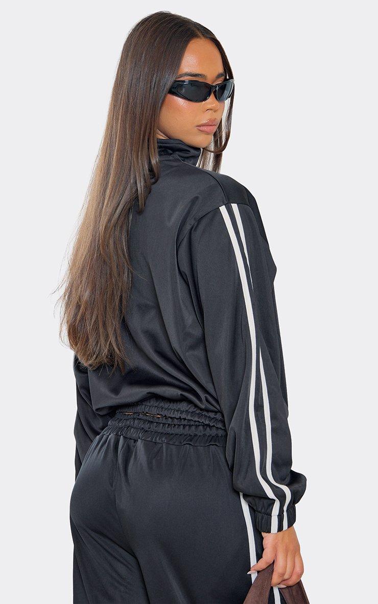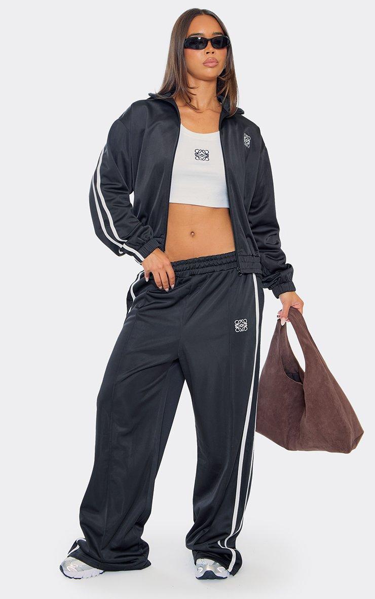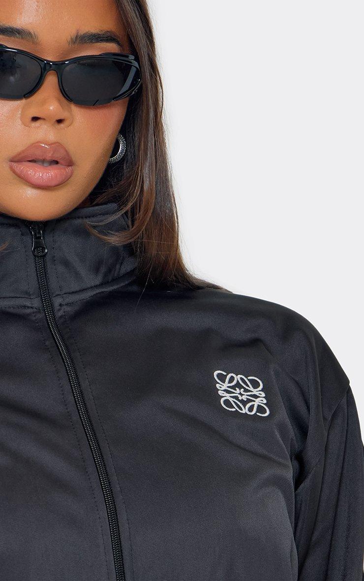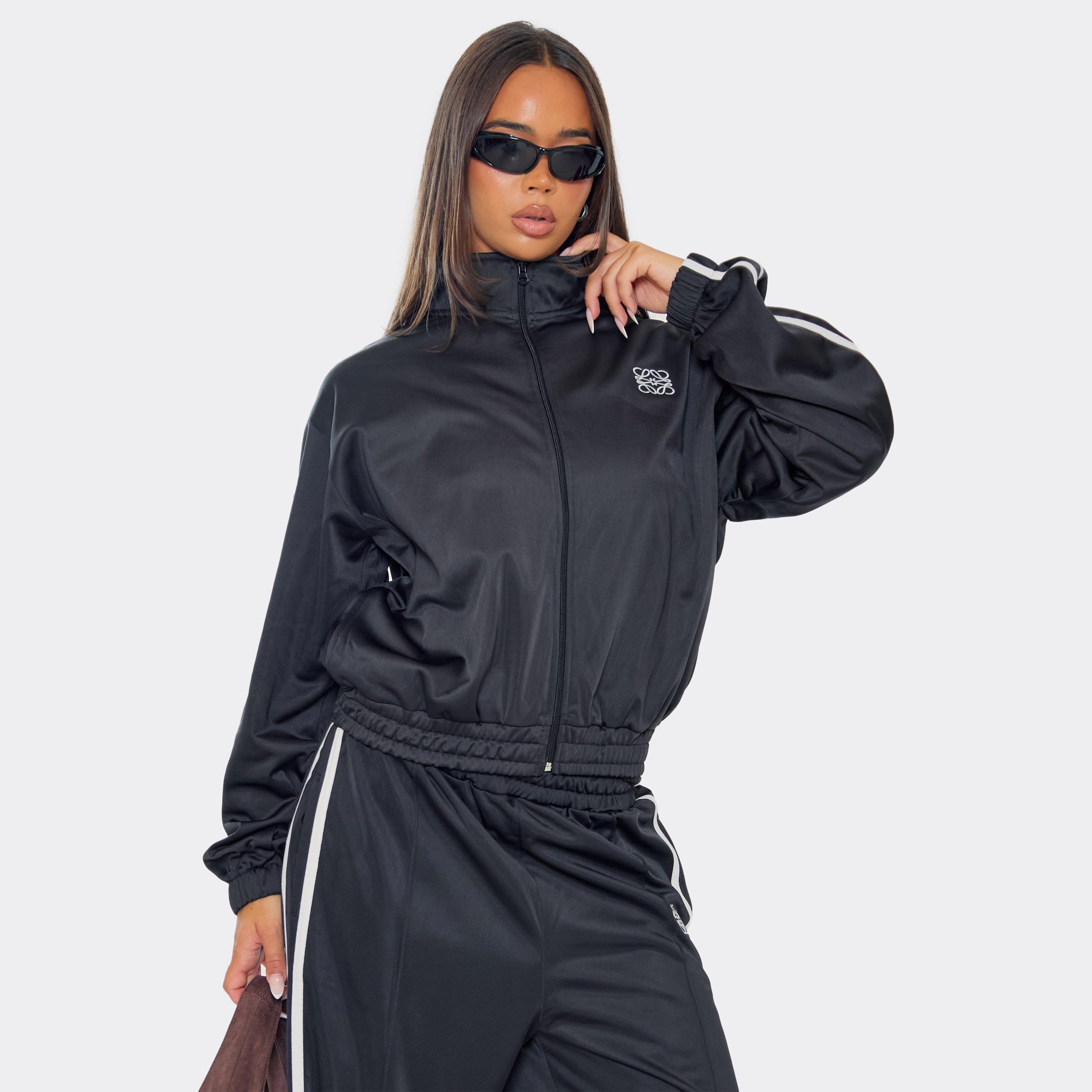 Contrast Stripe Embroidered Swirl Logo Zip Up Track Jacket In Black