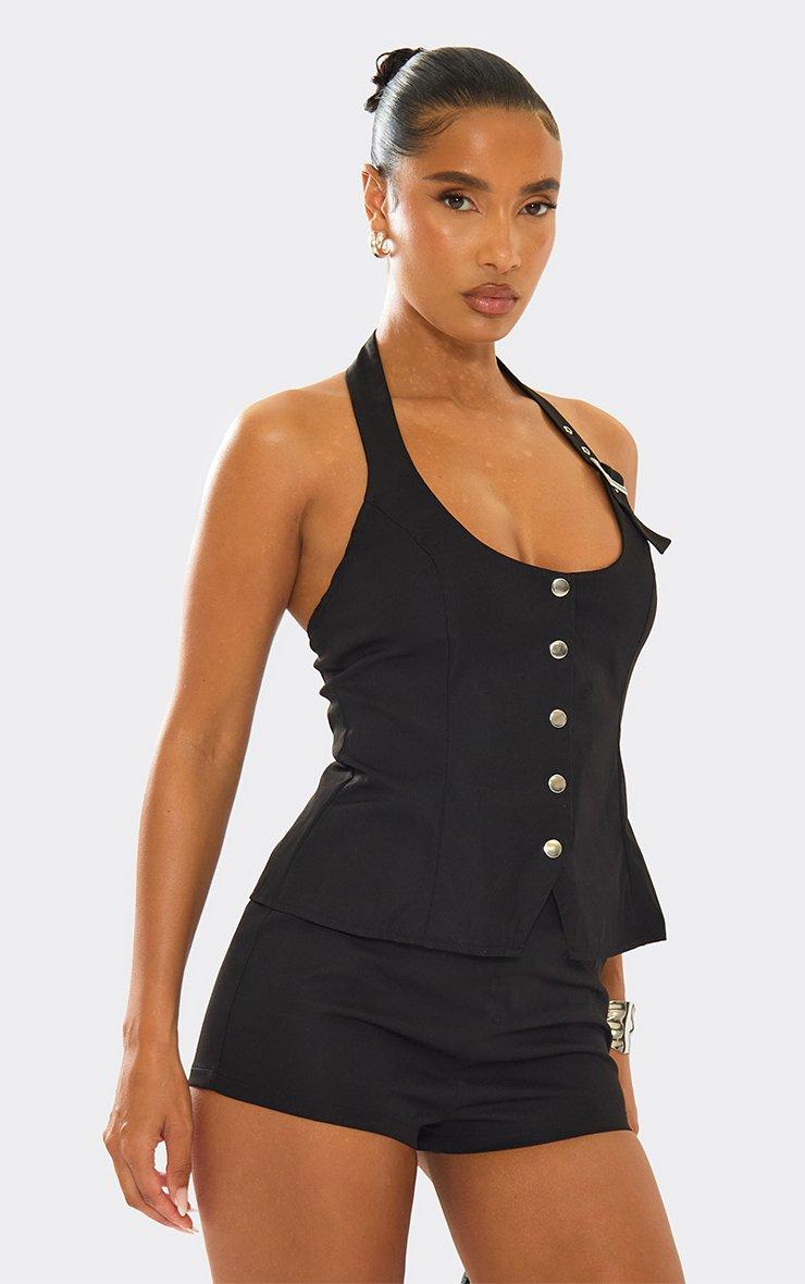 low rise fitted detail hot pants in black