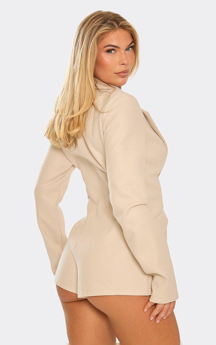 45908 wool look pocket detail cinched waist blazer playsuit in cream