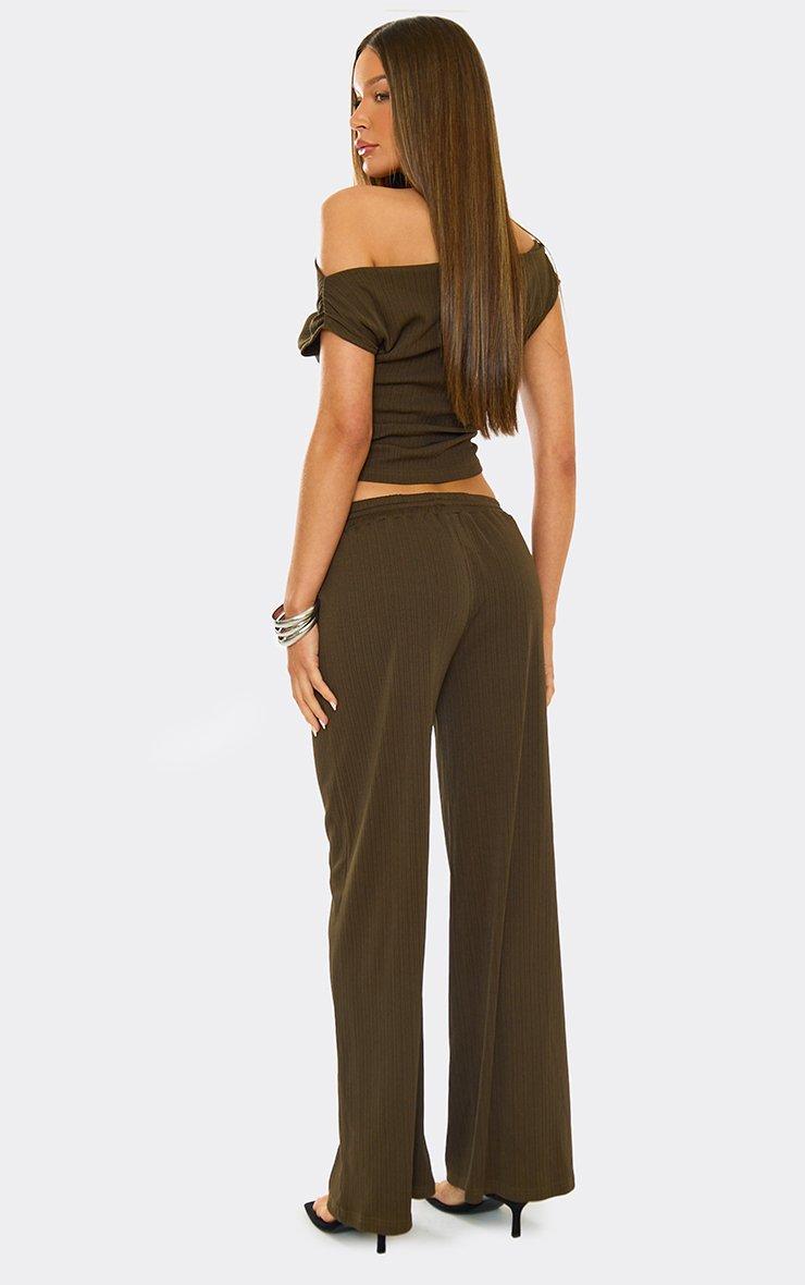 Asymmetric Off The Shoulder Top And Wide Leg Trousers Co-Ord Set In Chocolate Brown
