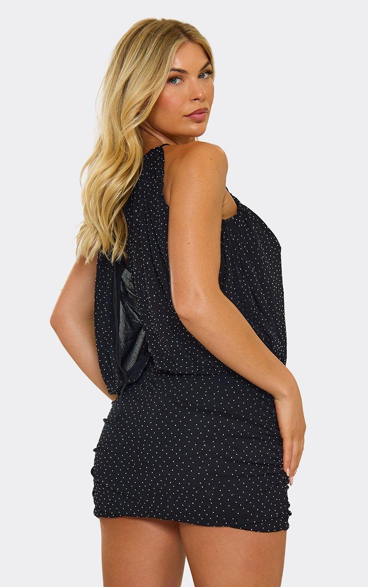 High Neck Open Back Layered Frill Hem Mini Dress In Black
