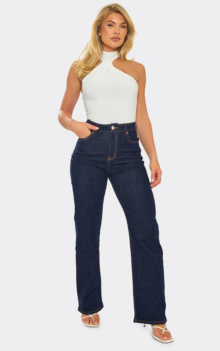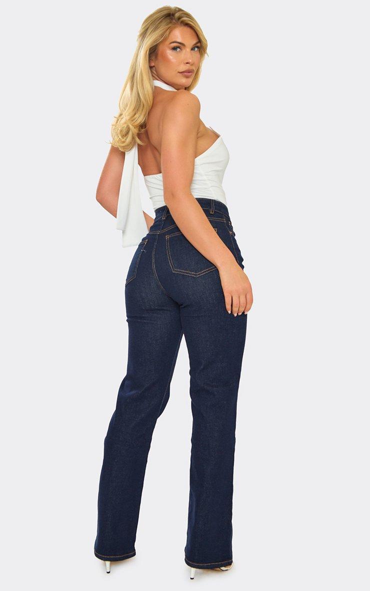 Mid Rise Eyelet Detail Straight Leg Jeans In Dark Blue Wash