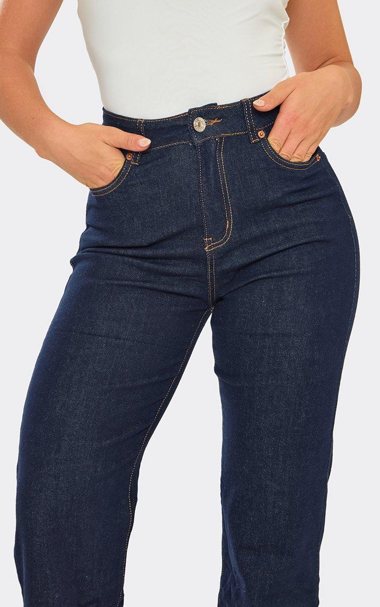 Low Rise Button Up Seam Detail Capri Jeans In Indigo Blue Denim