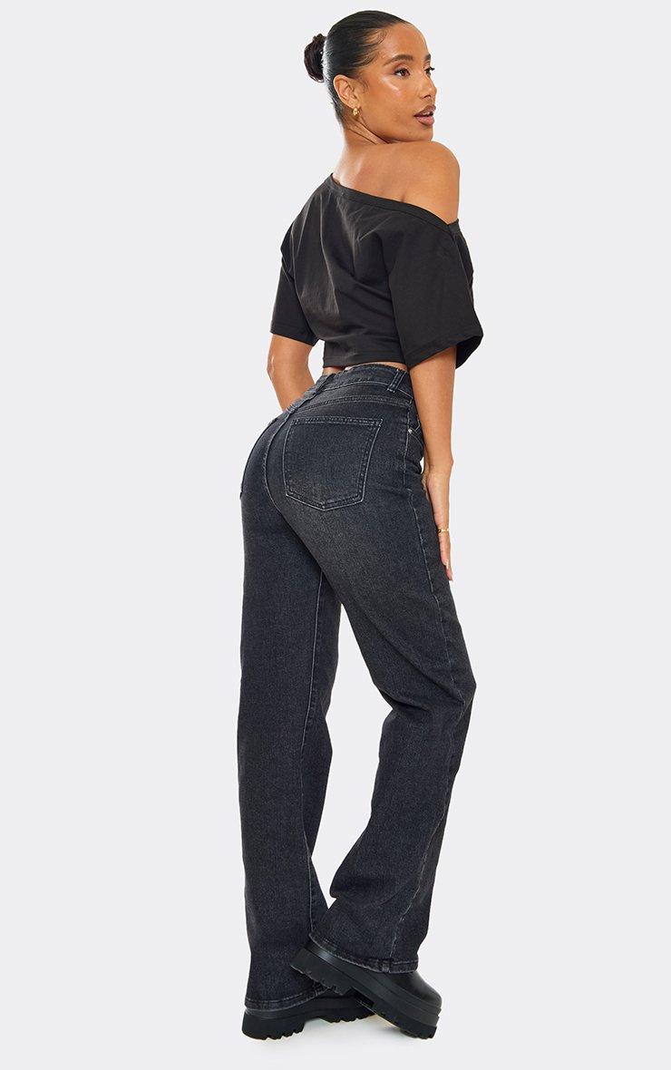 High Waist Wide Leg Stretchy Jeans In Black