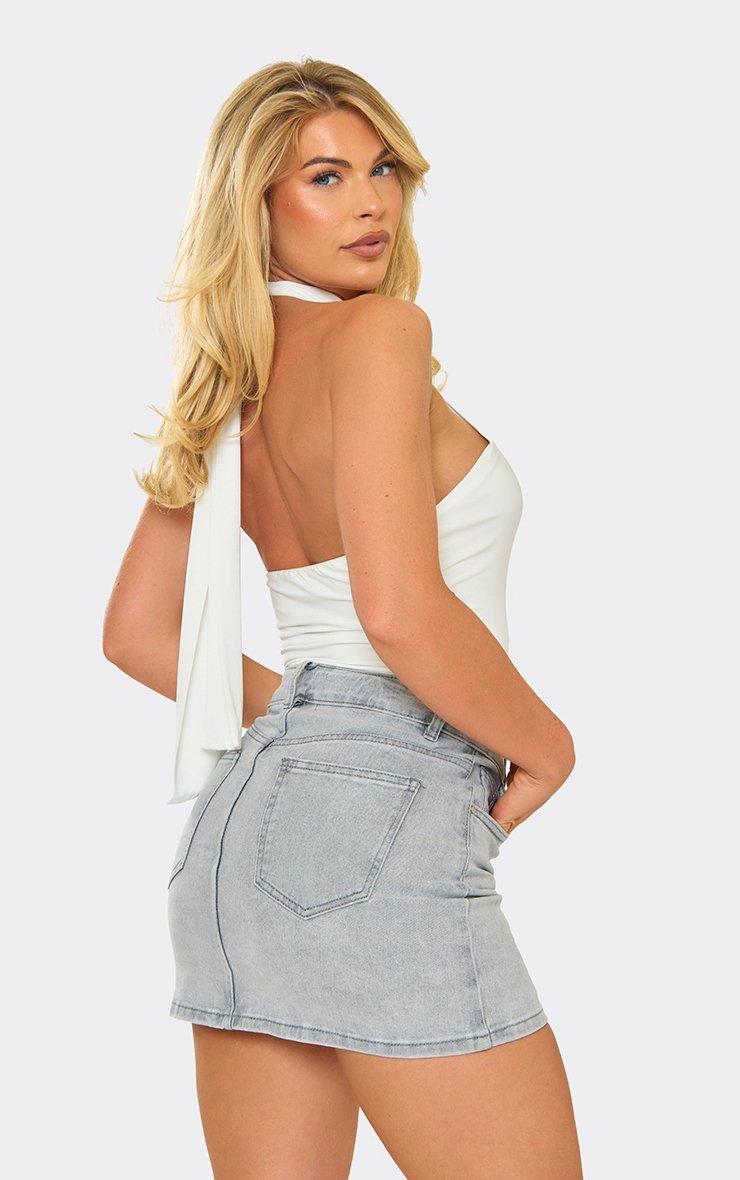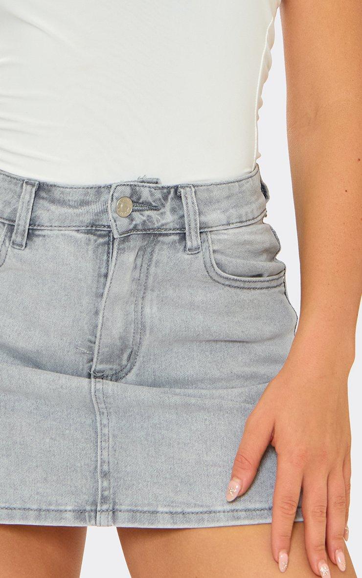 Mid Rise Front Pocket Detail Mini Skirt In Light Grey Denim