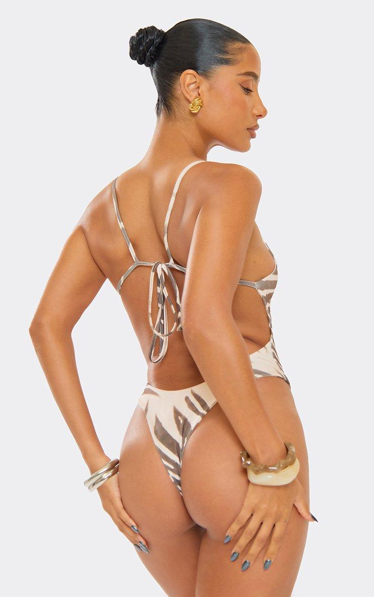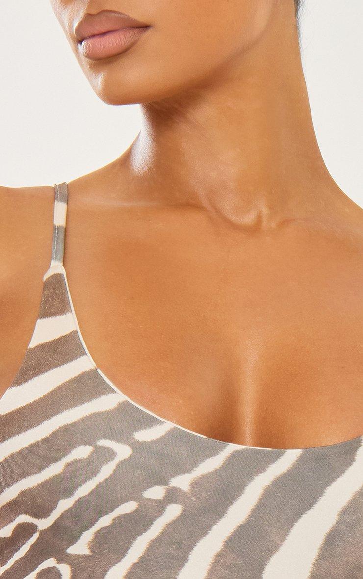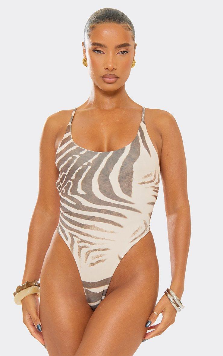 Scoop Neck High Leg Swimsuit In Brown Zebra Print