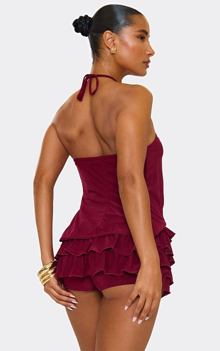 Halterneck Cut Out Heart Detail Strappy Top In Burgundy Slinky