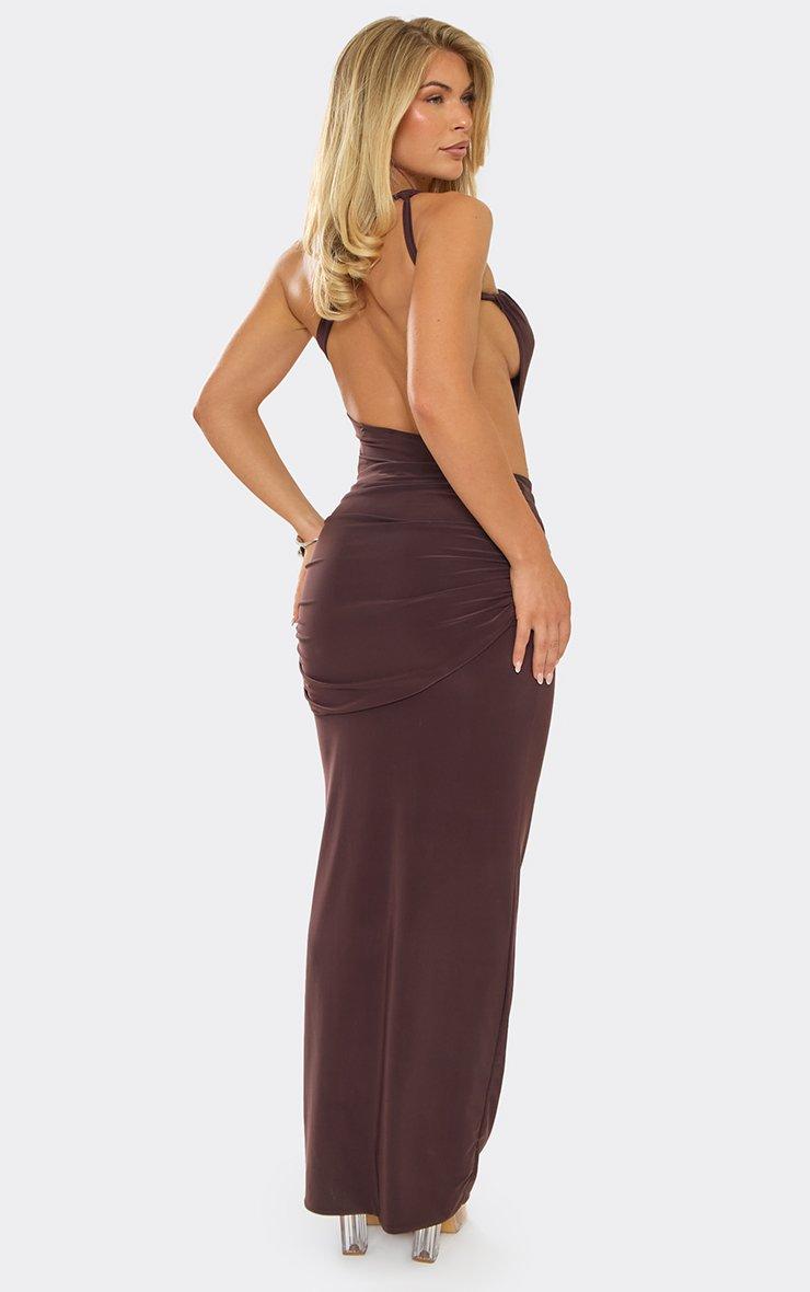 Mid Rise Drape Detail Maxi Skirt In Chocolate Brown