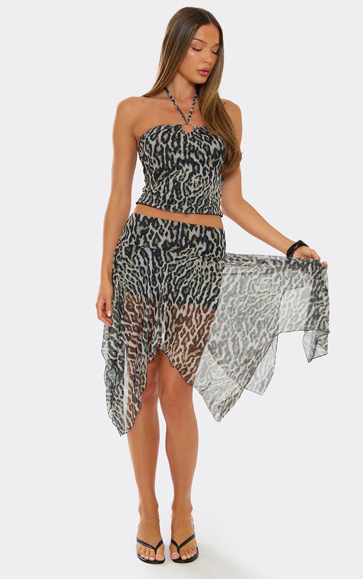 Mid Rise Strappy Gathered Detail Mini Skirt In Animal Print