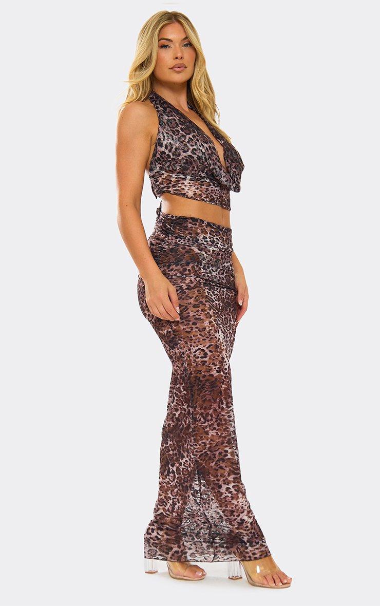 Low Waist Drape Front Detail Maxi Skirt In Multi Print Mesh