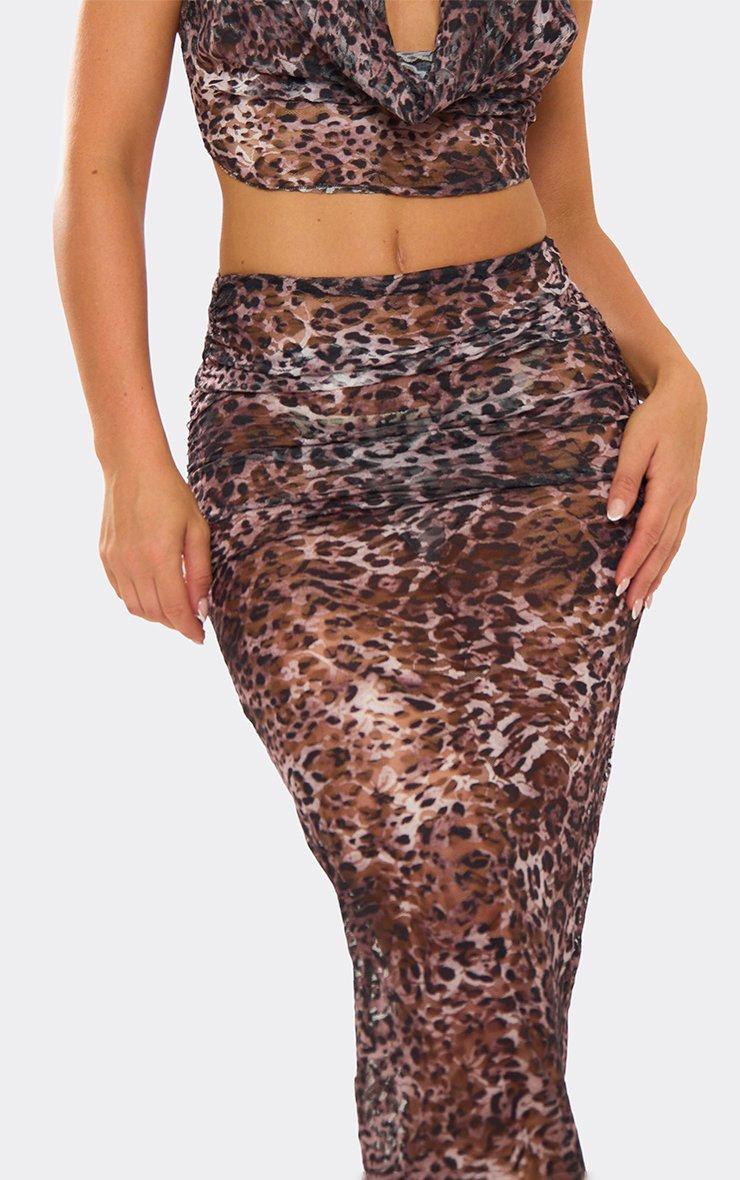Low Rise Asymmetric Hem Midi Skirt In Multi Leopard Print