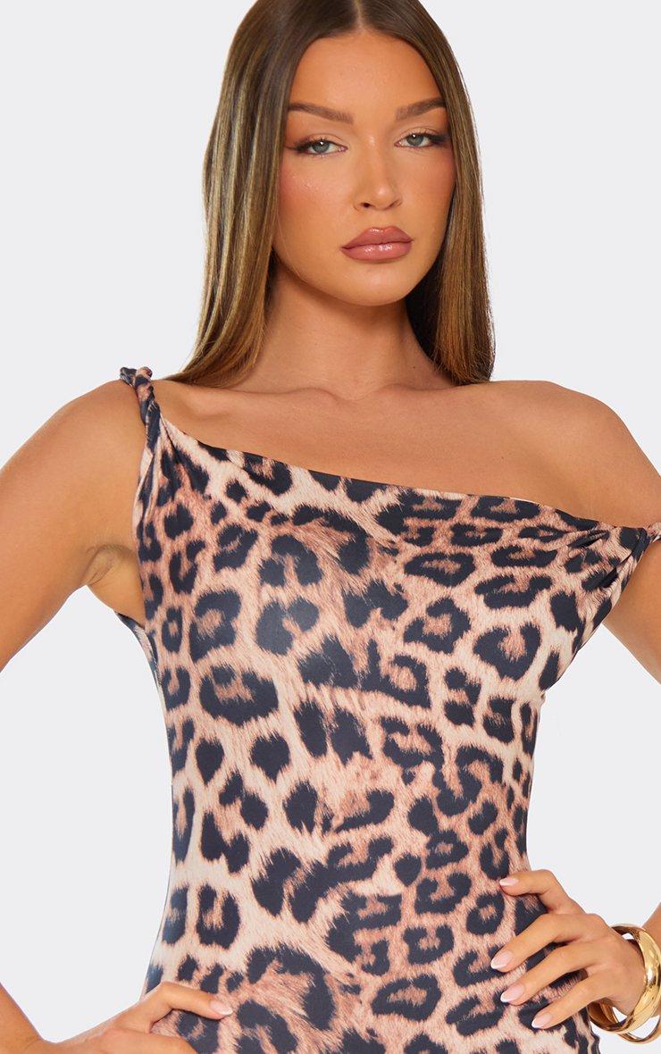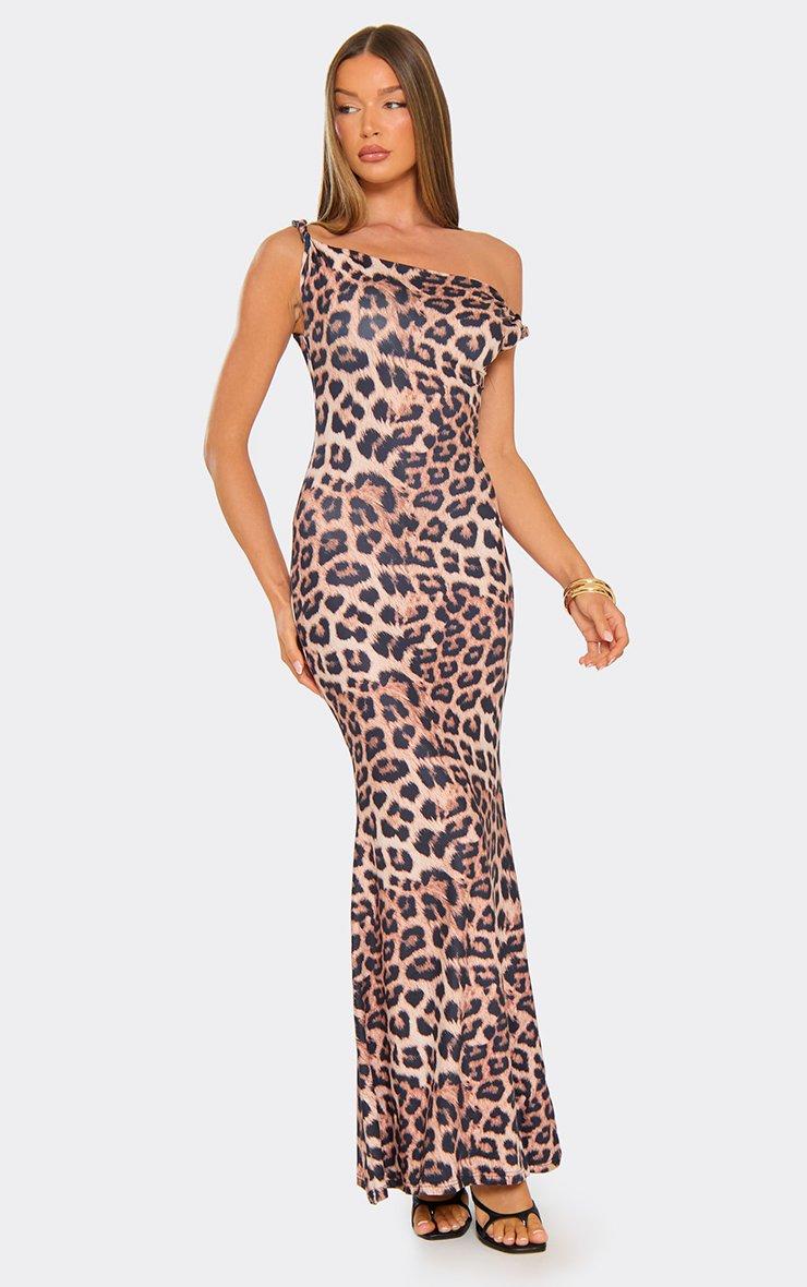 off the shoulder twist strap detail maxi dress in brown leopard print