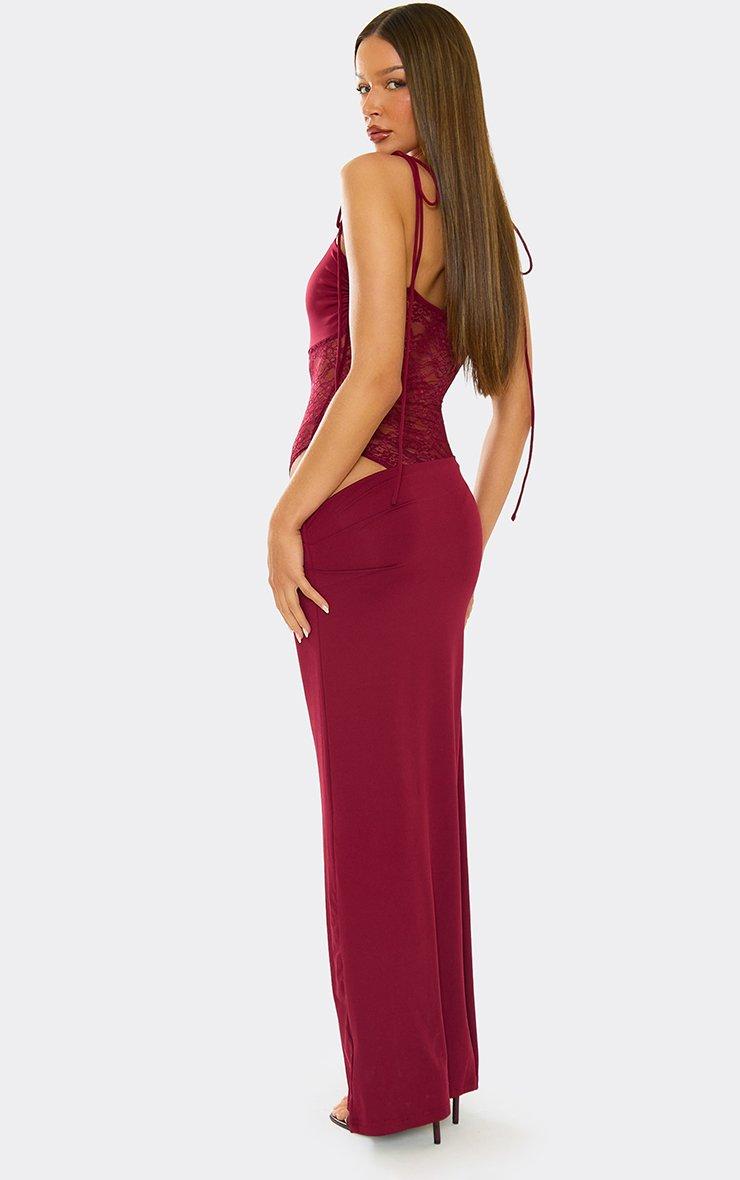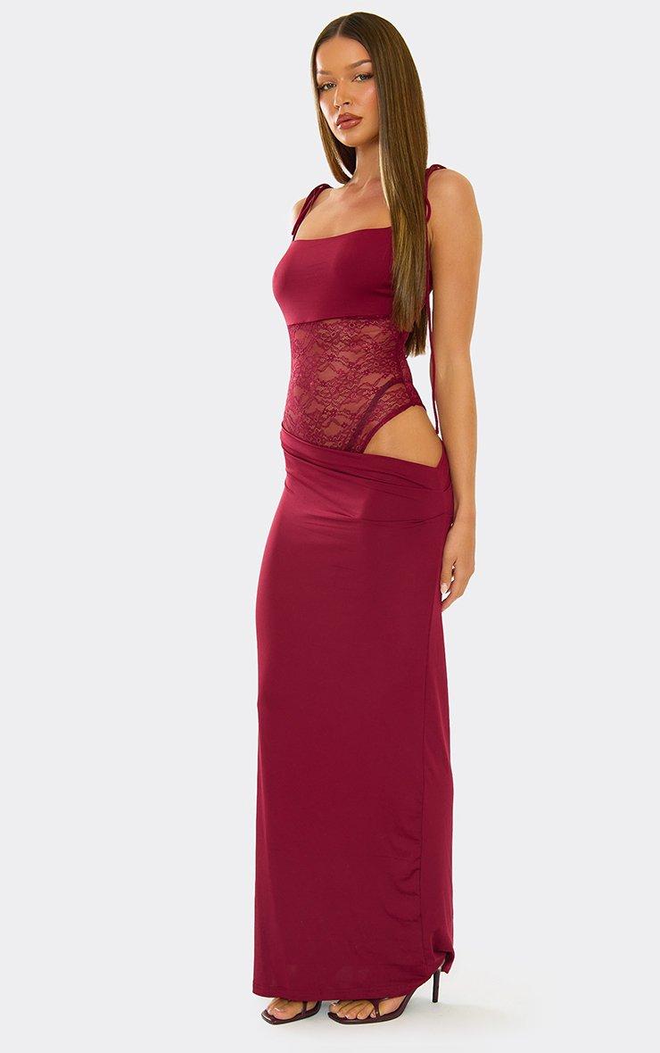 Strappy Contrast Lace Panel Maxi Dress In Burgundy
