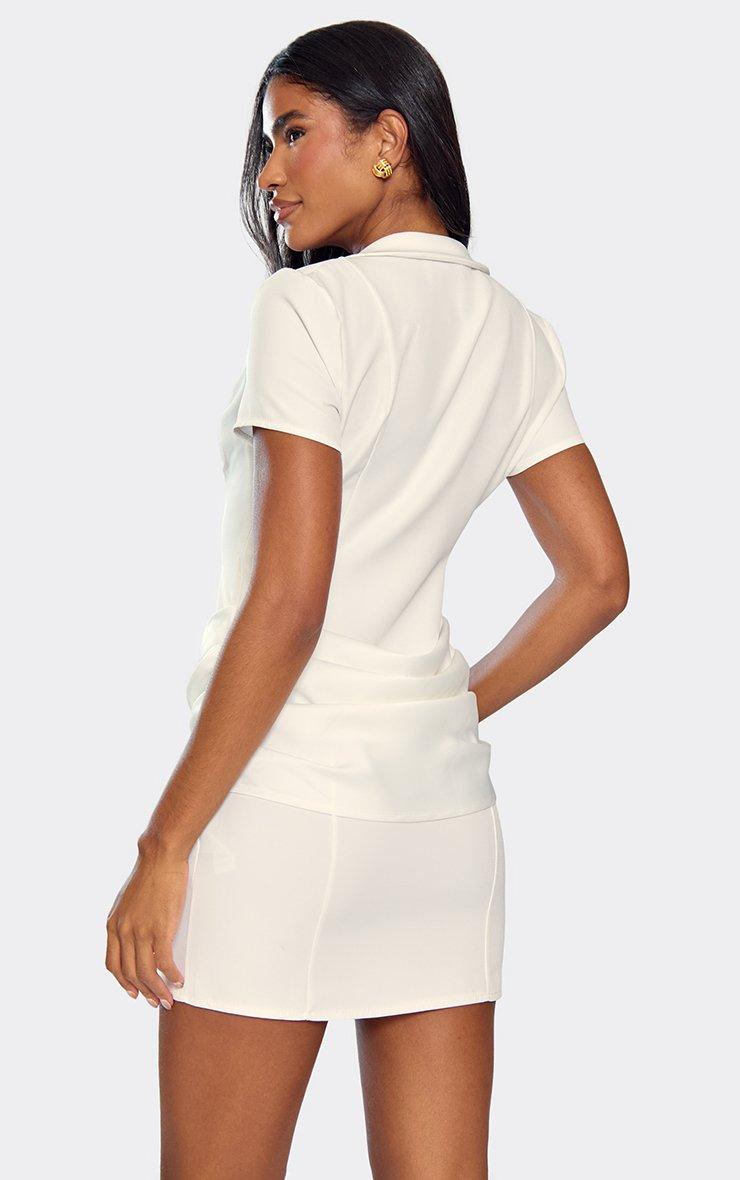 short sleeve plunge neck drape panel detail blazer dress in white