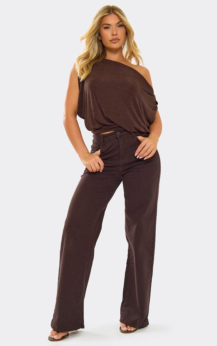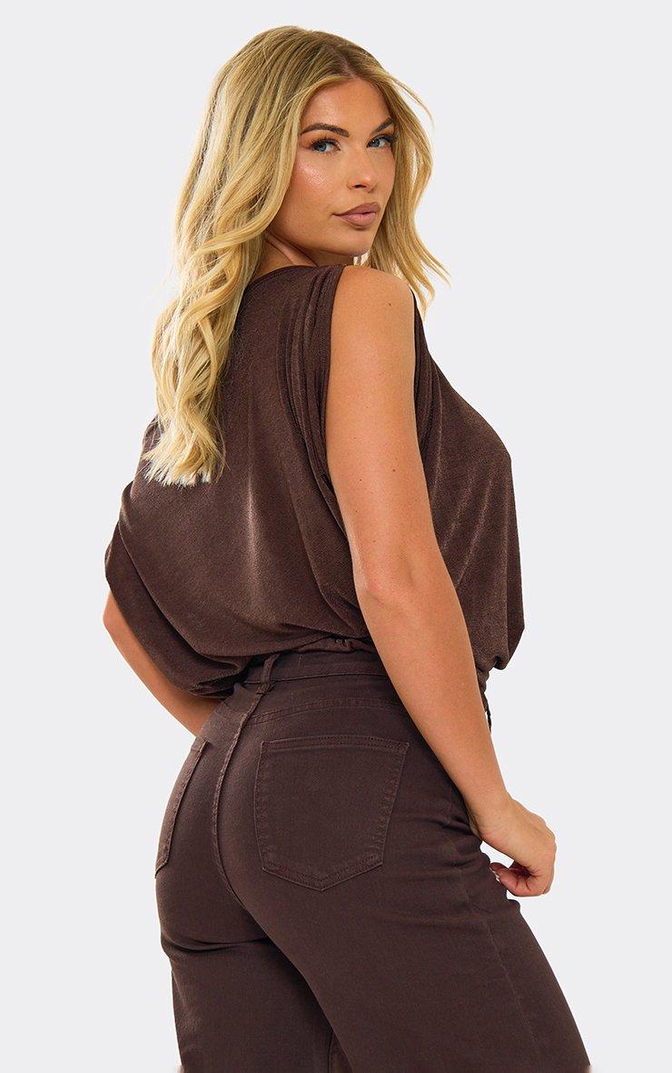Off The Shoulder Drape Detail Top In Chocolate Brown