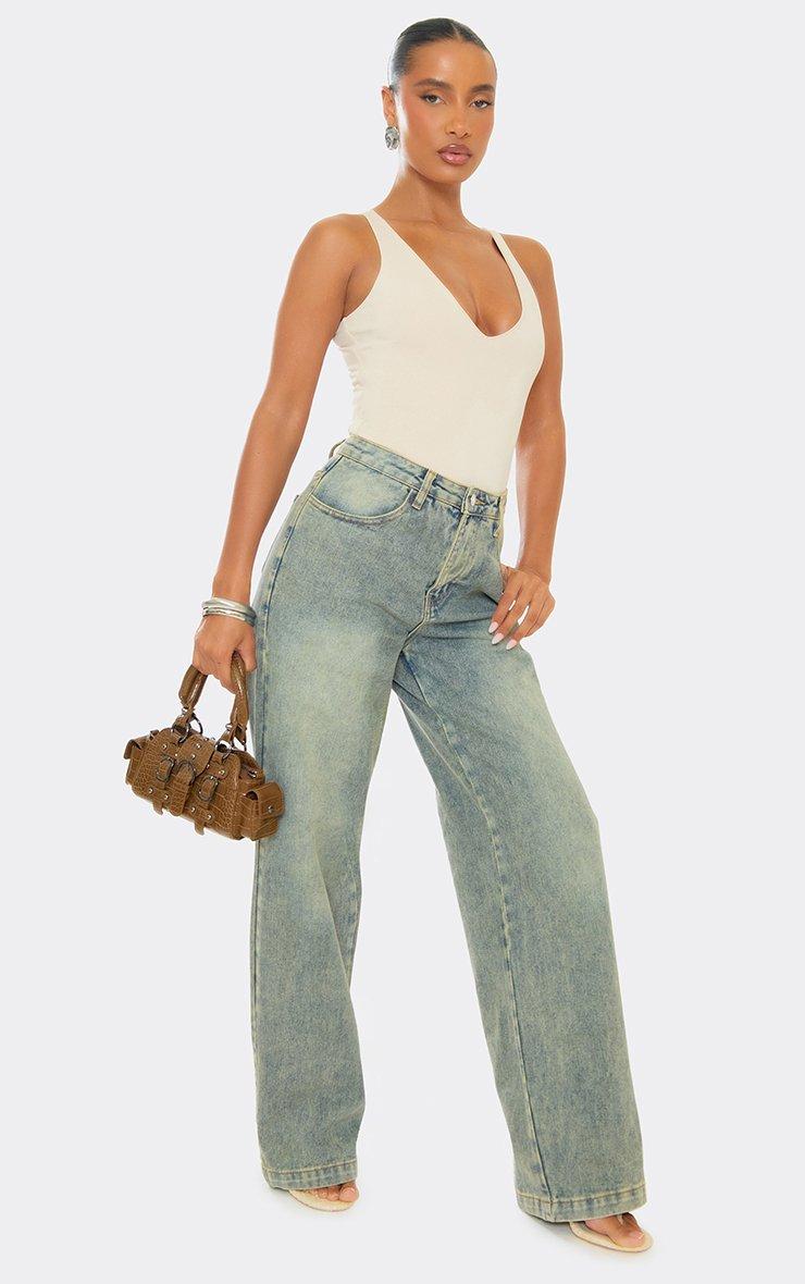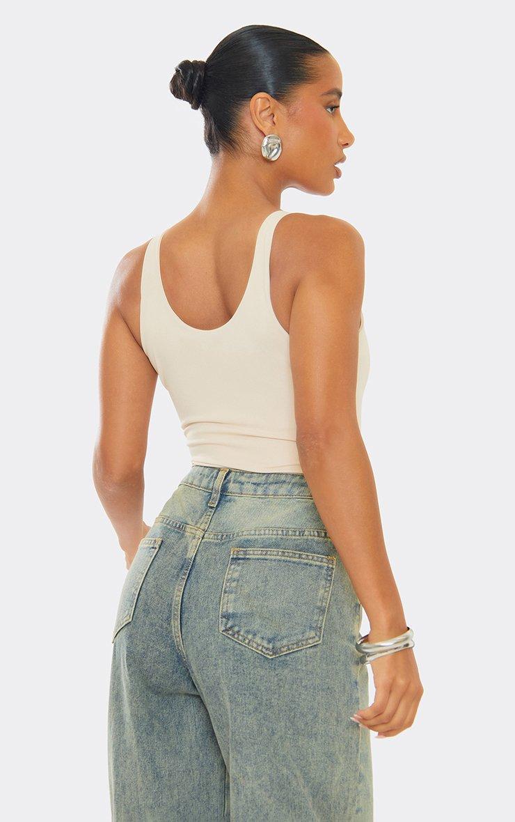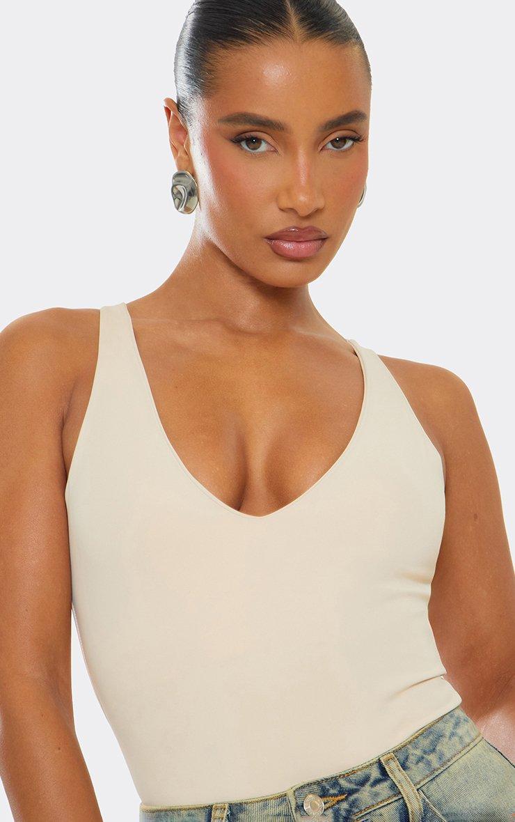 Short Sleeve High Neck Open Back Detail Top In Nude Slinky
