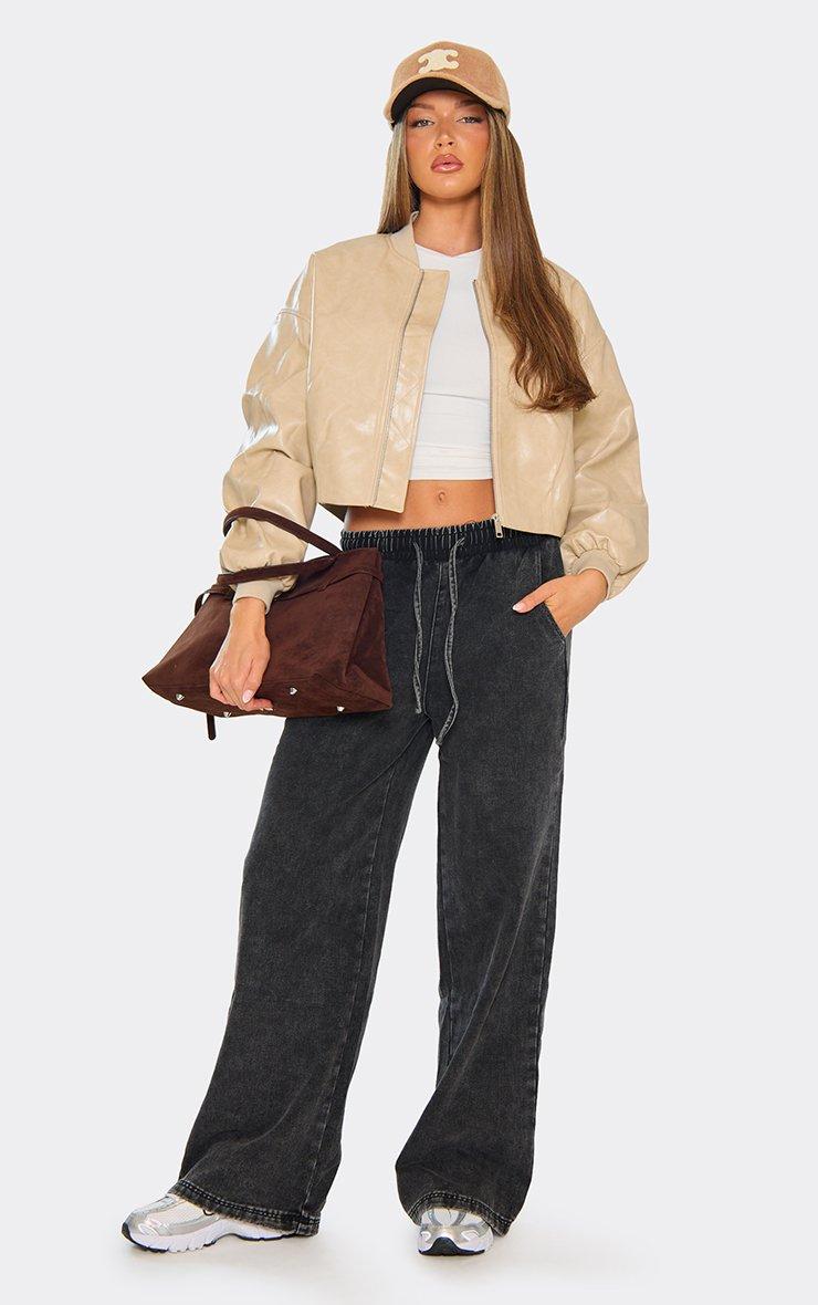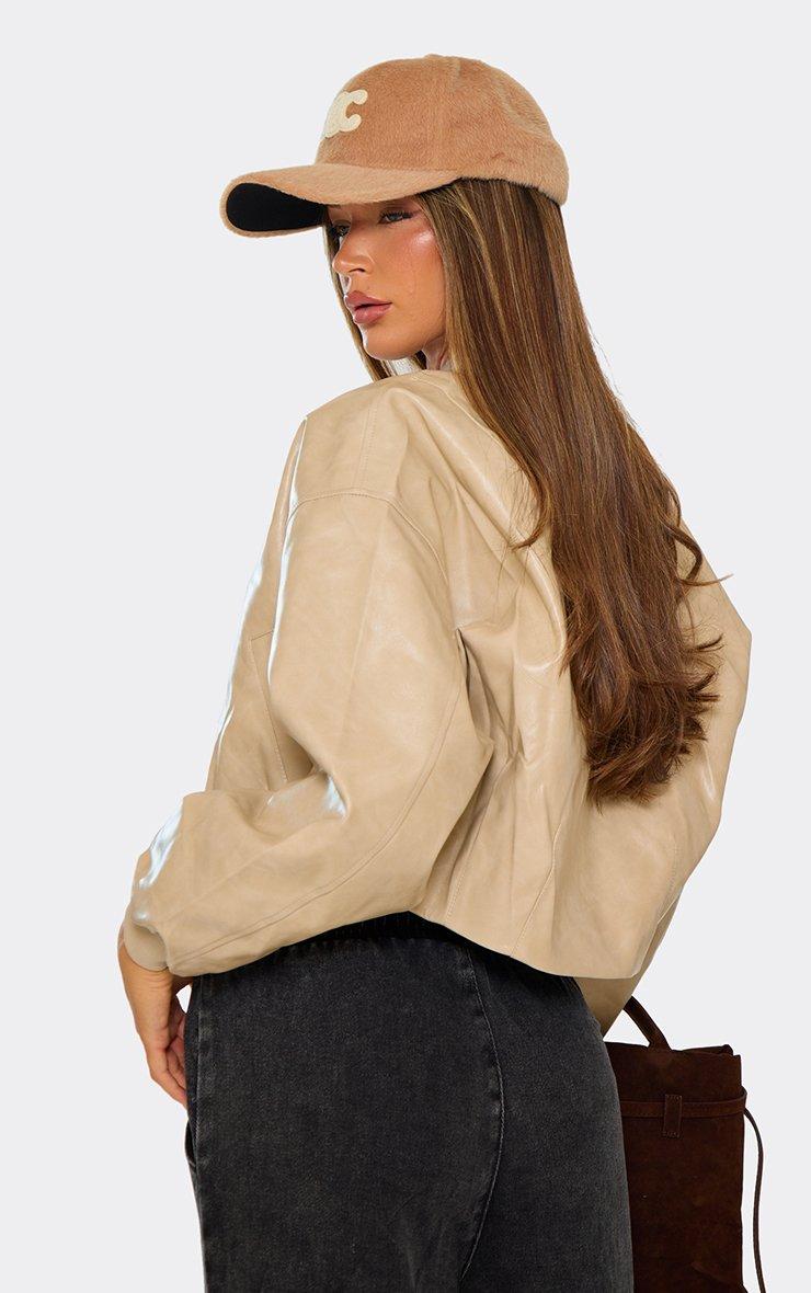 Long Sleeve Zip Up Detail Cropped Biker Jacket In Stone Wool