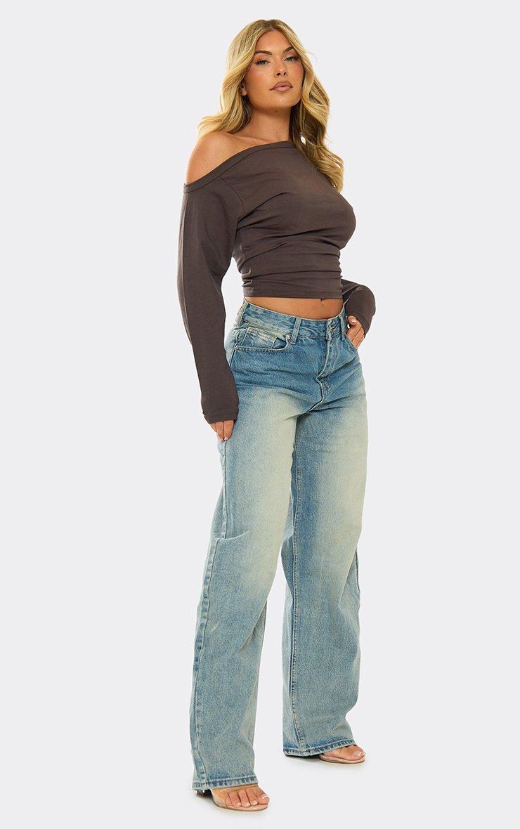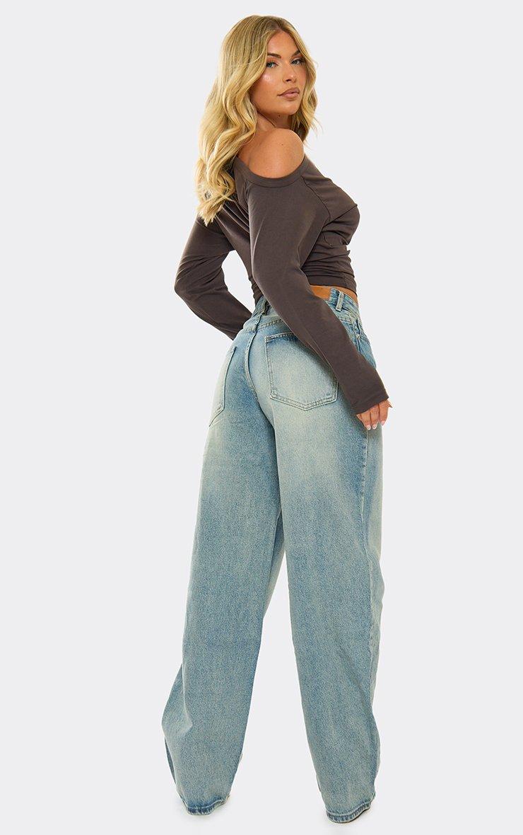 High Waisted Wide Leg Jeans In Blue Washed Denim
