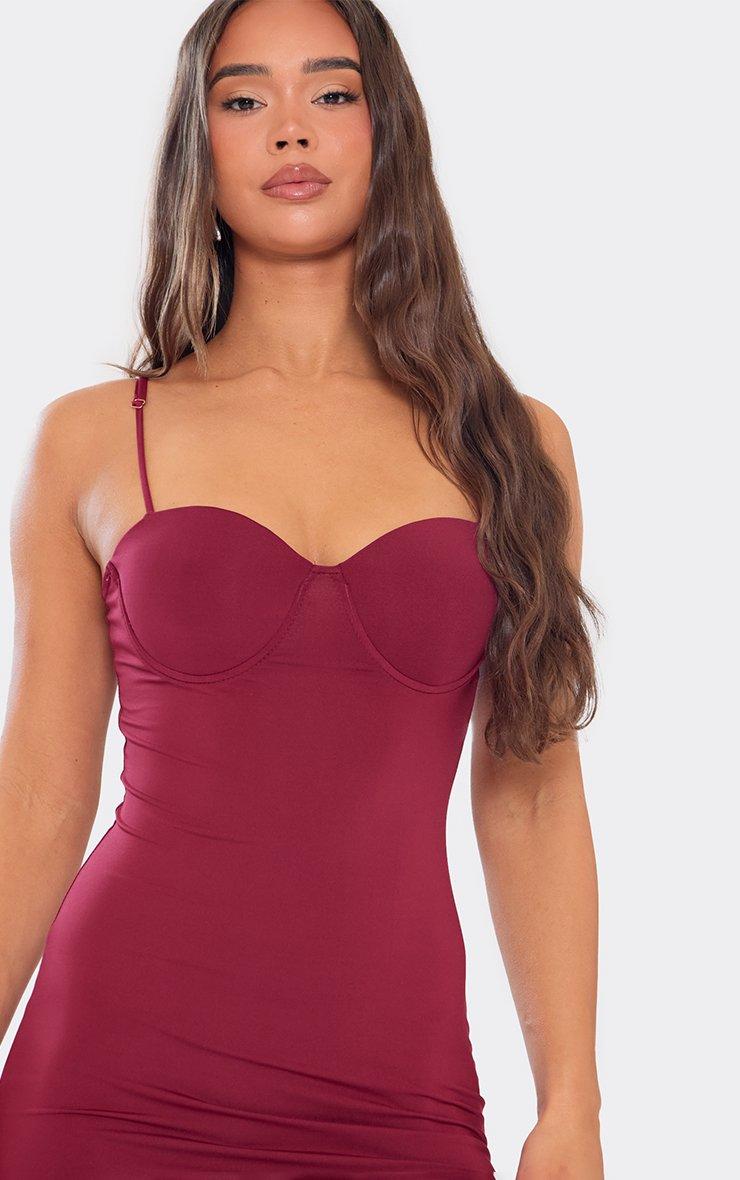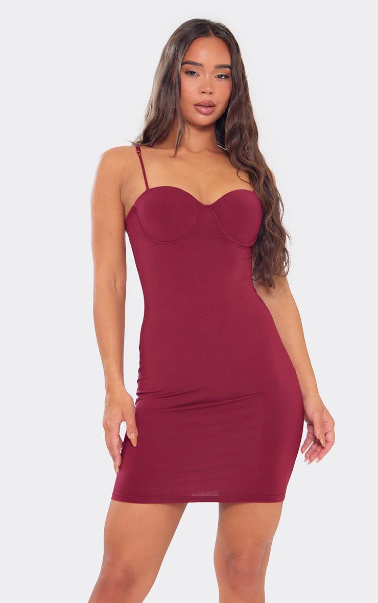 Underwire Sculpt Detail Mini Dress In Burgundy