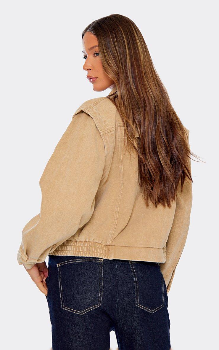 Long Sleeve Zip Front Detail Bomber Jacket In Brown Denim