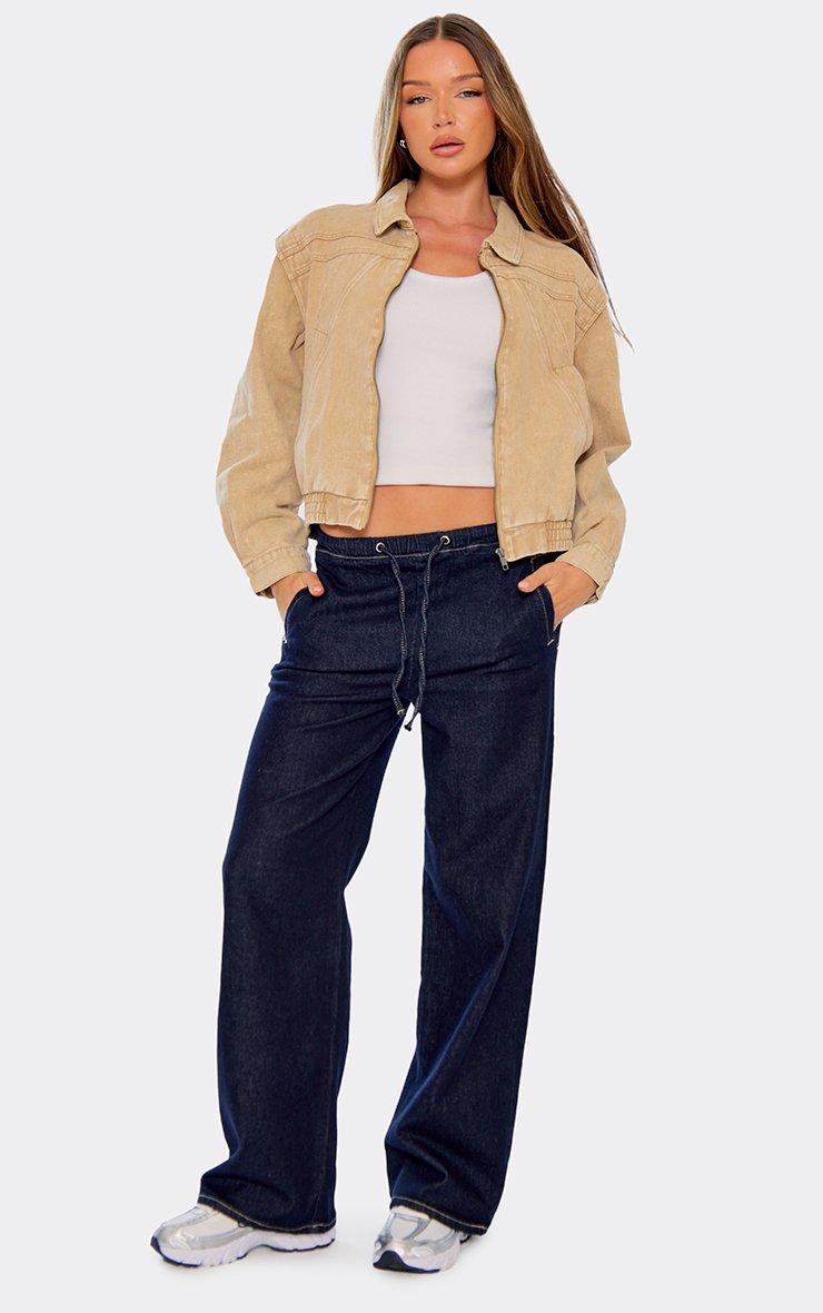 Long Sleeve Zip Down Oversized Jacket In Dark Indigo Denim