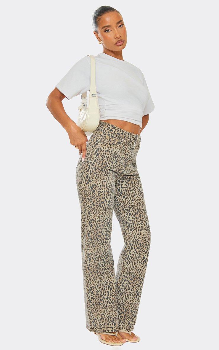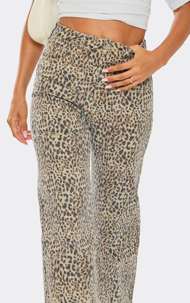 High Rise Straight Leg Jeans In Brown Leopard Print Denim