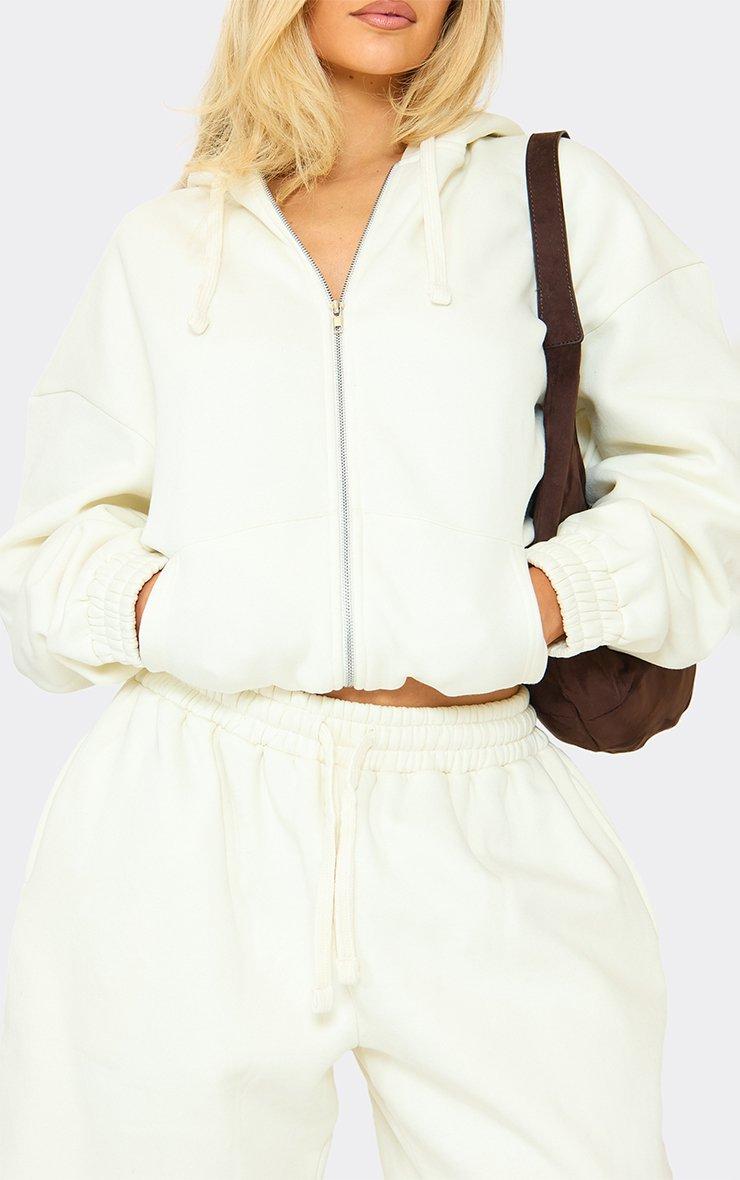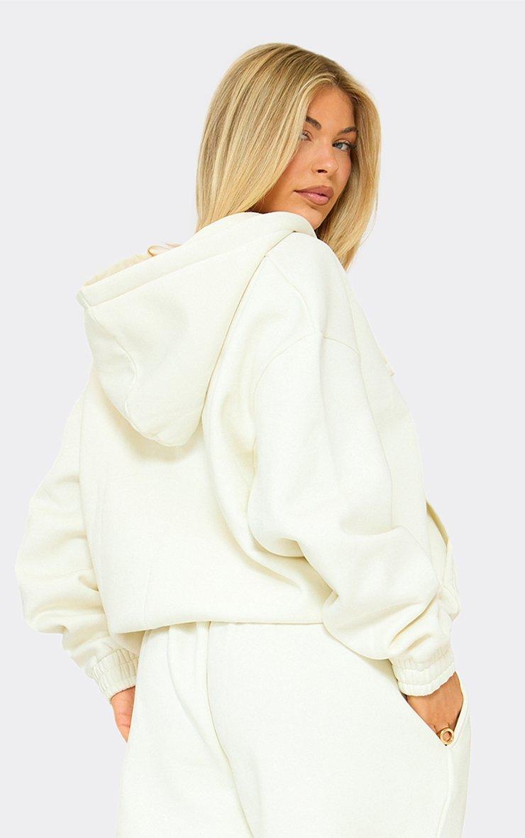 Contrast Stripe Boxy Zip Up Hoodie In Cream