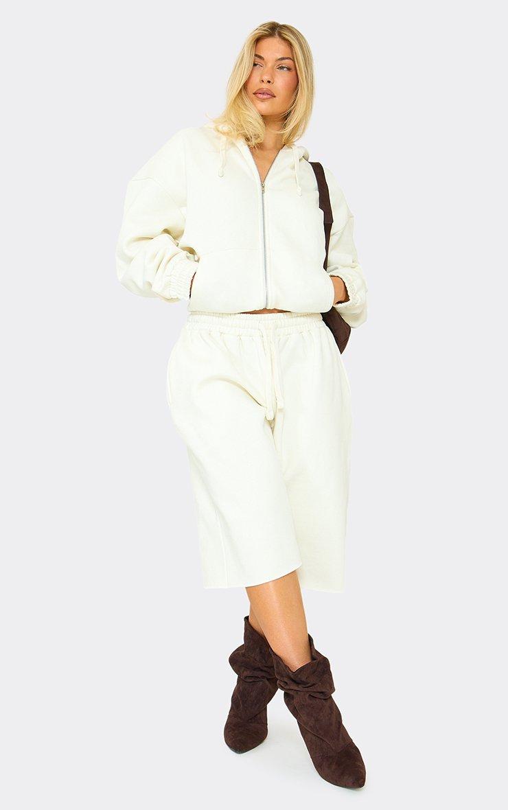 Low Rise Drawstring Waist Sweat Jorts In Cream
