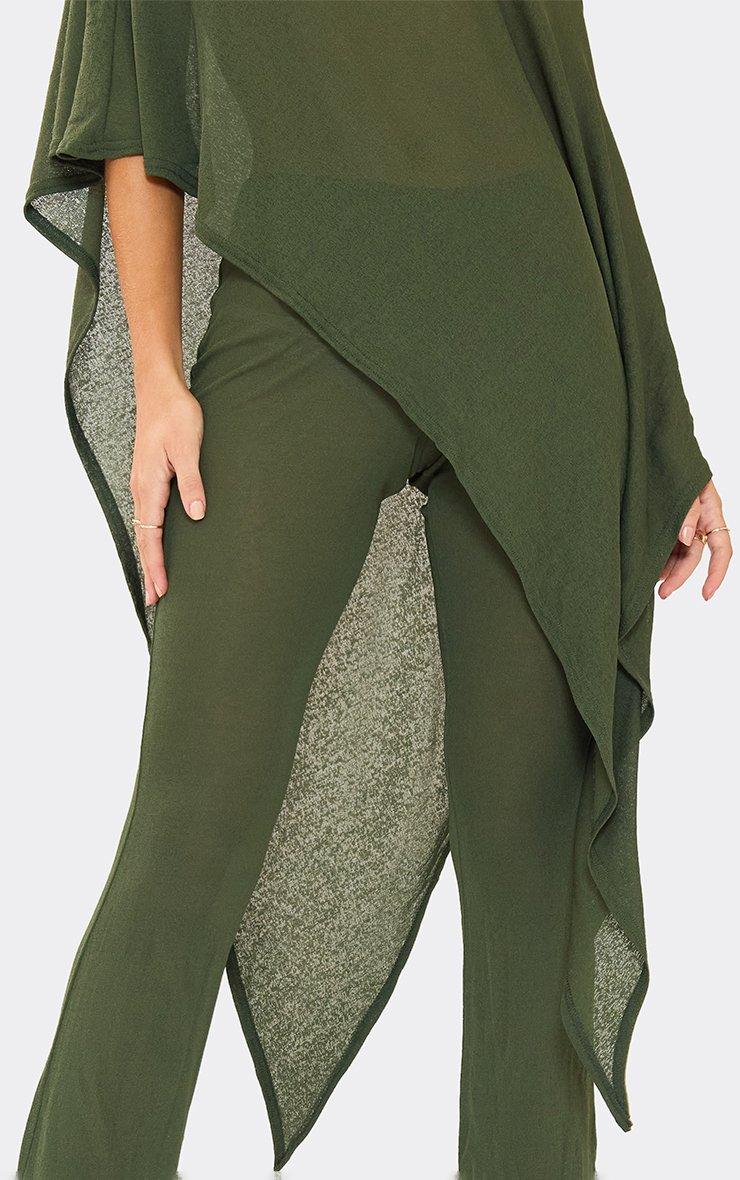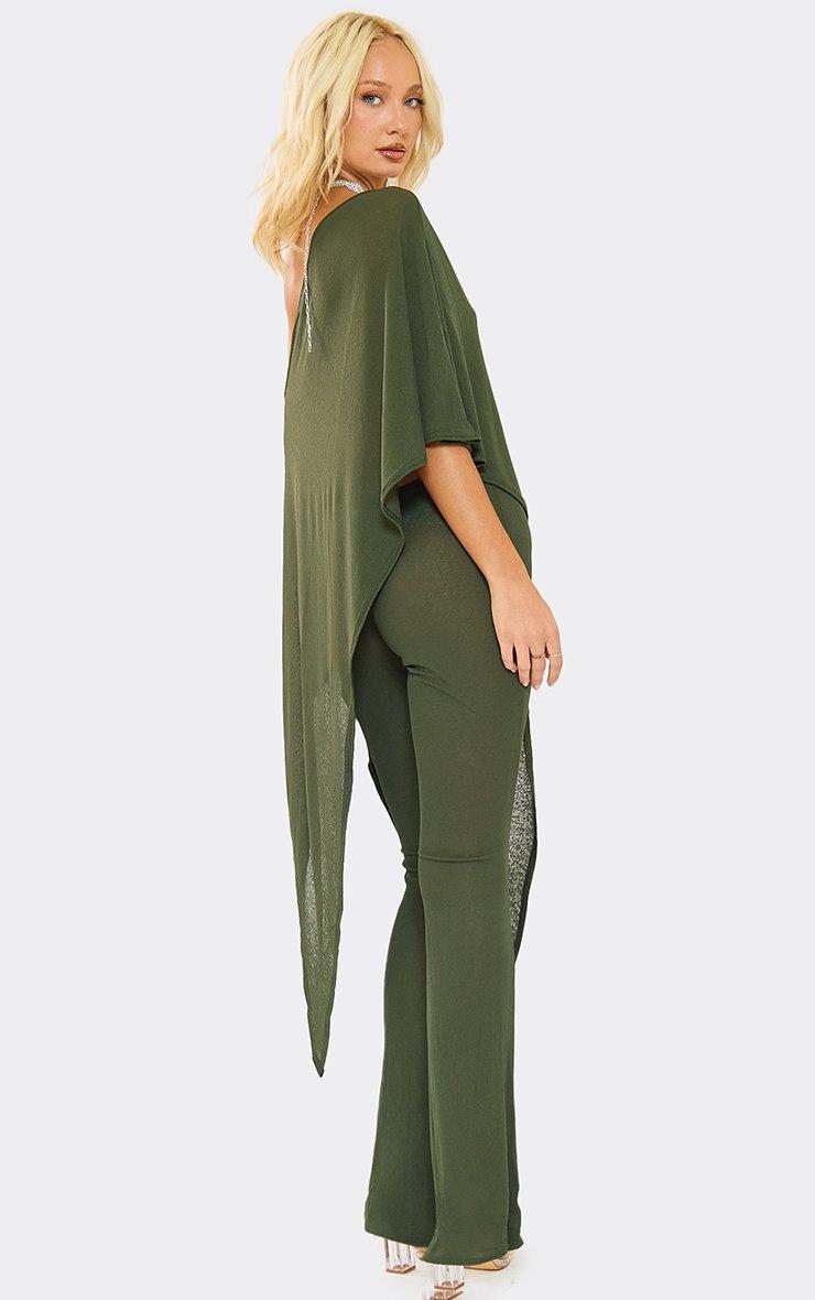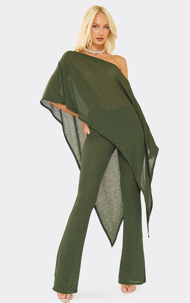 Off The Shoulder Long Sleeve Cape Top In Green Printed