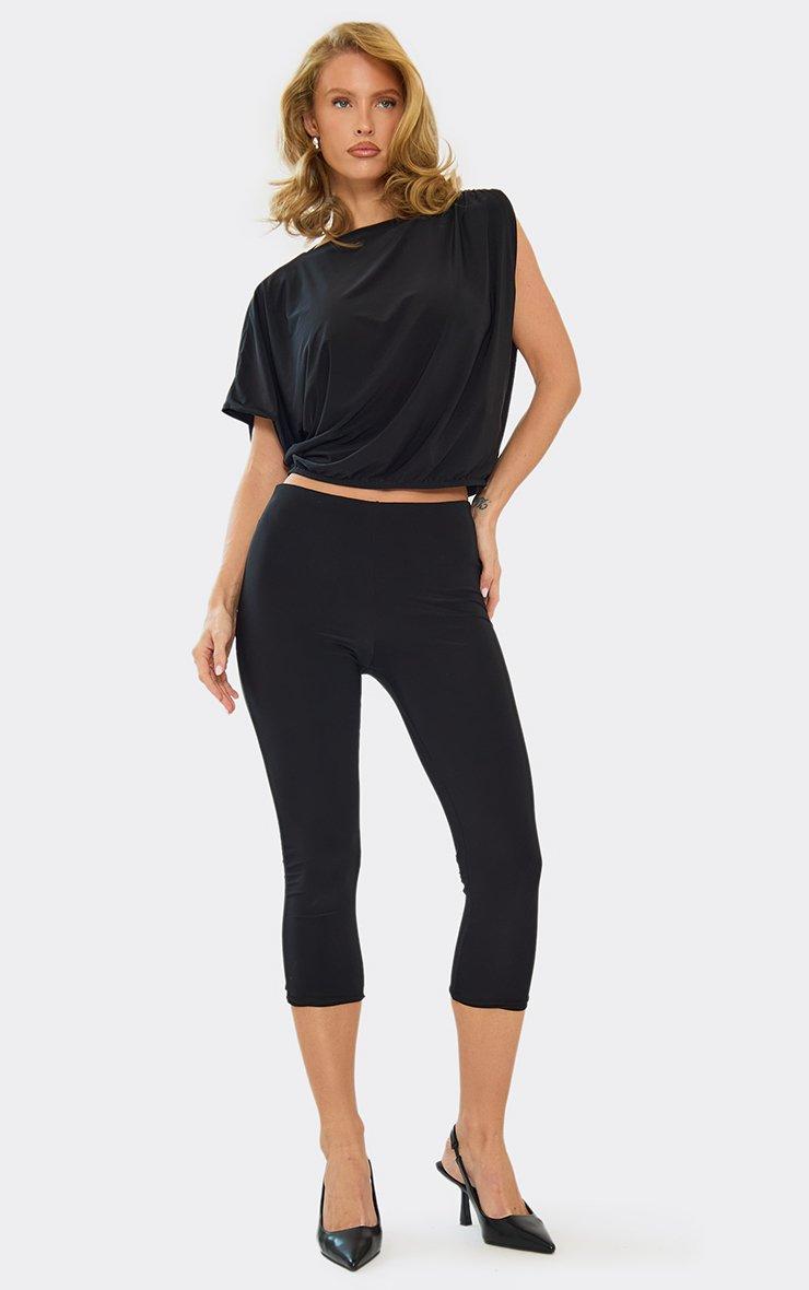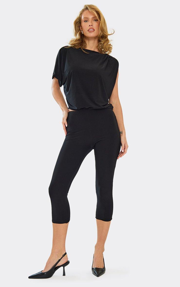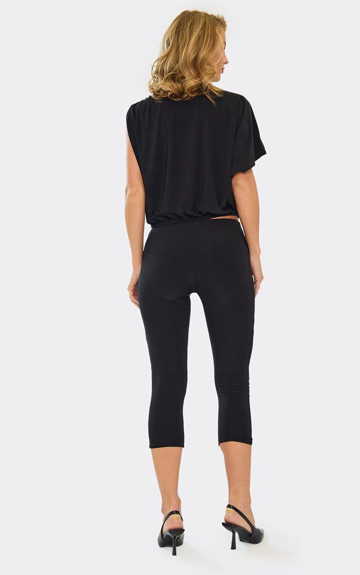 Fold Over Waistband Drape Side Leggings In Black Lace