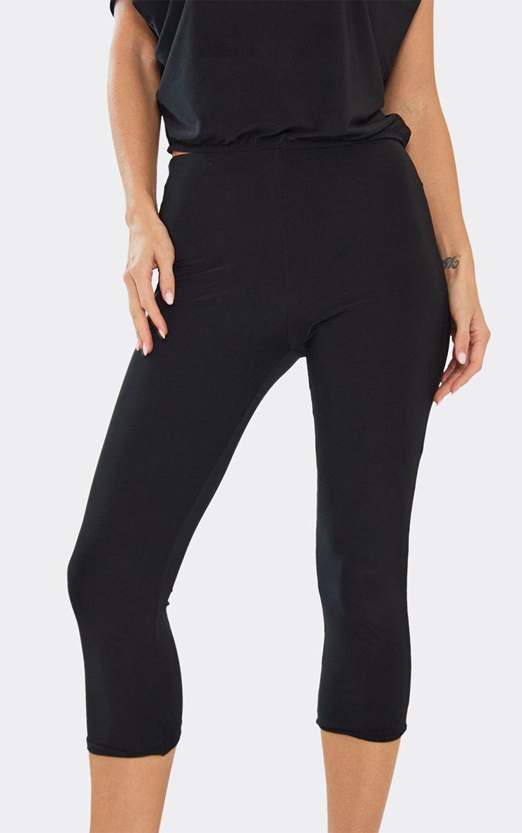 Mid Rise Split Hem Capri Leggings In Black Floral Lace