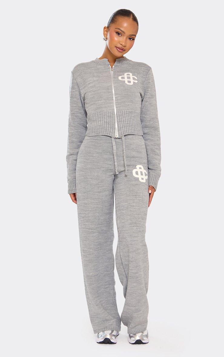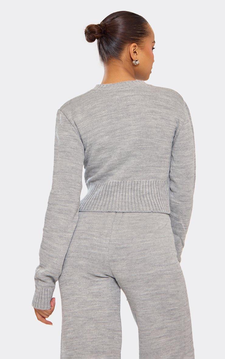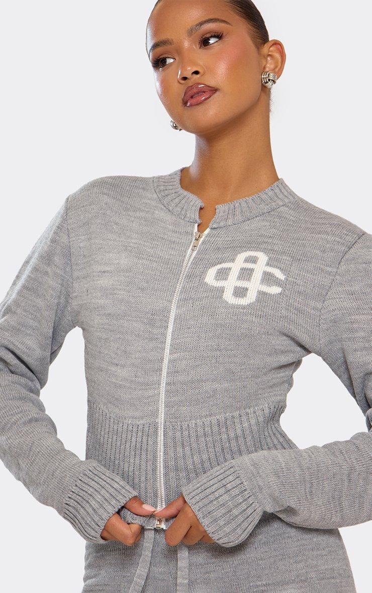45923 Crew Neck Cinched Waist Swirl Detail Knit Jacket In Grey