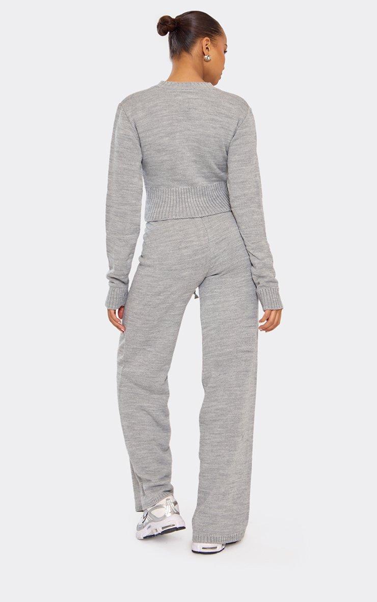 Mid Rise Drawstring Waist Wide Leg Trousers In Grey Knit