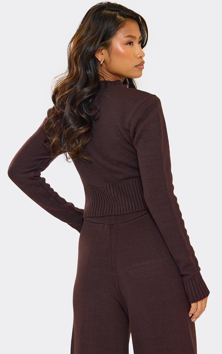 High Waist Wide Leg Trousers In Chocolate Brown Knit