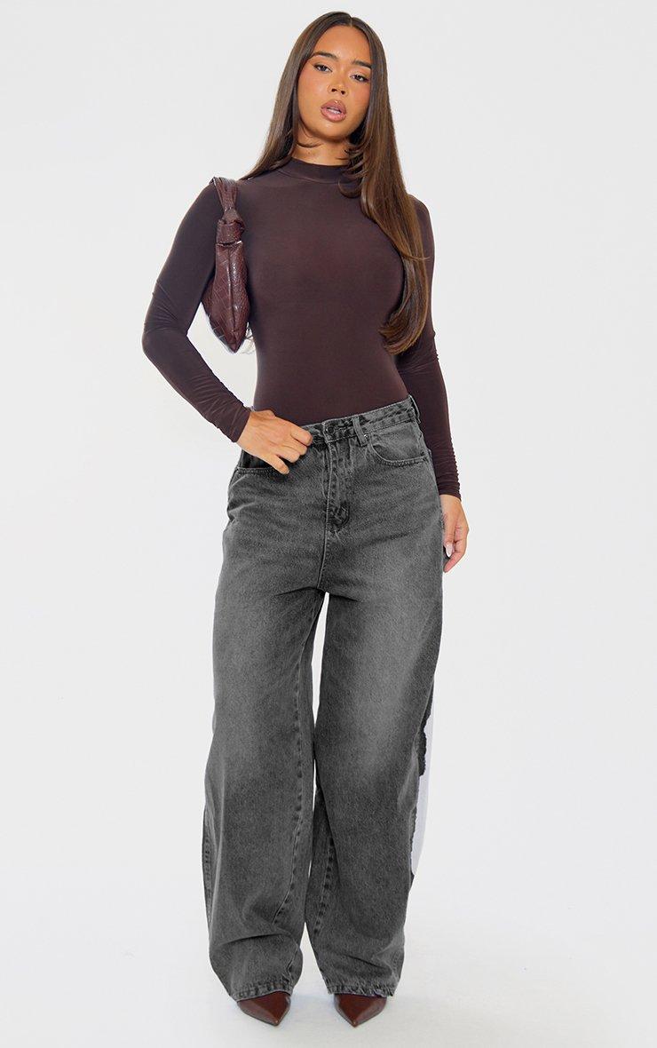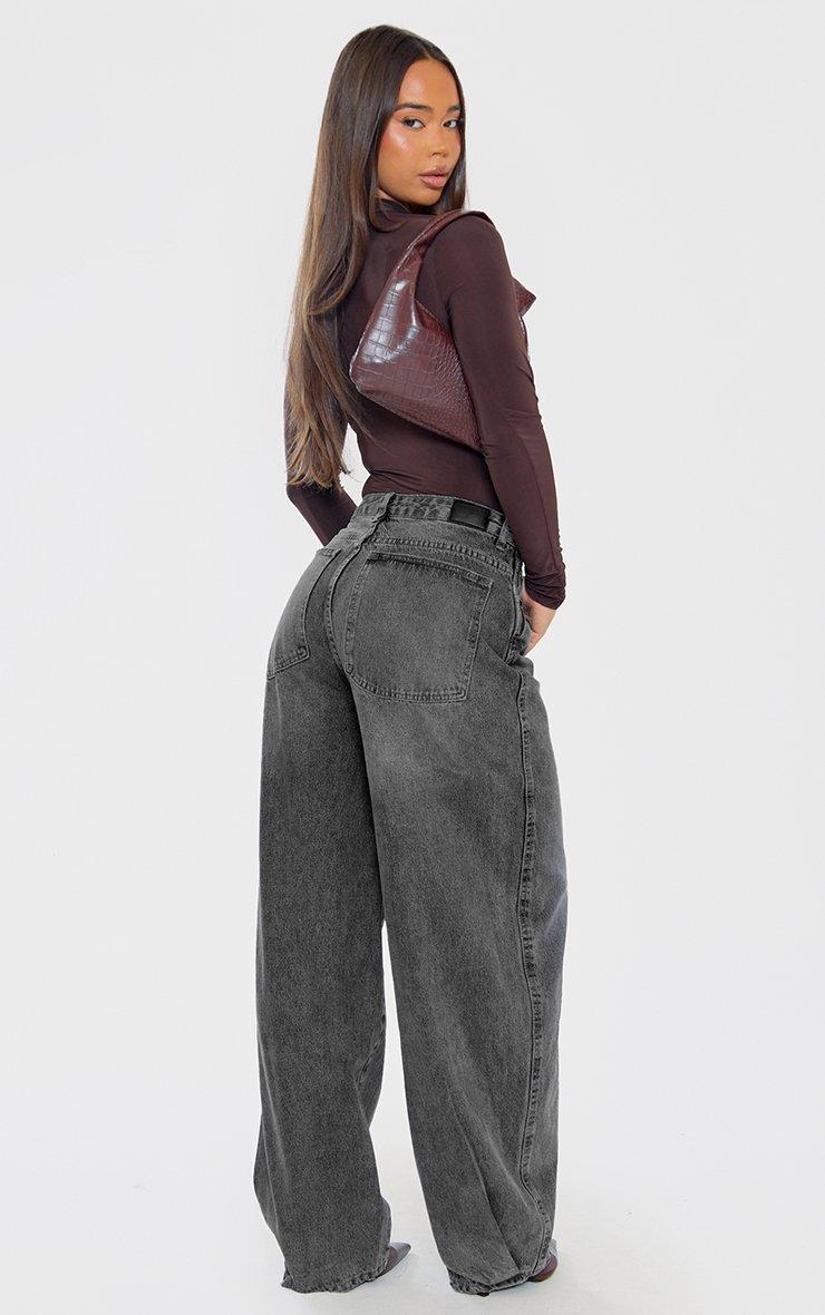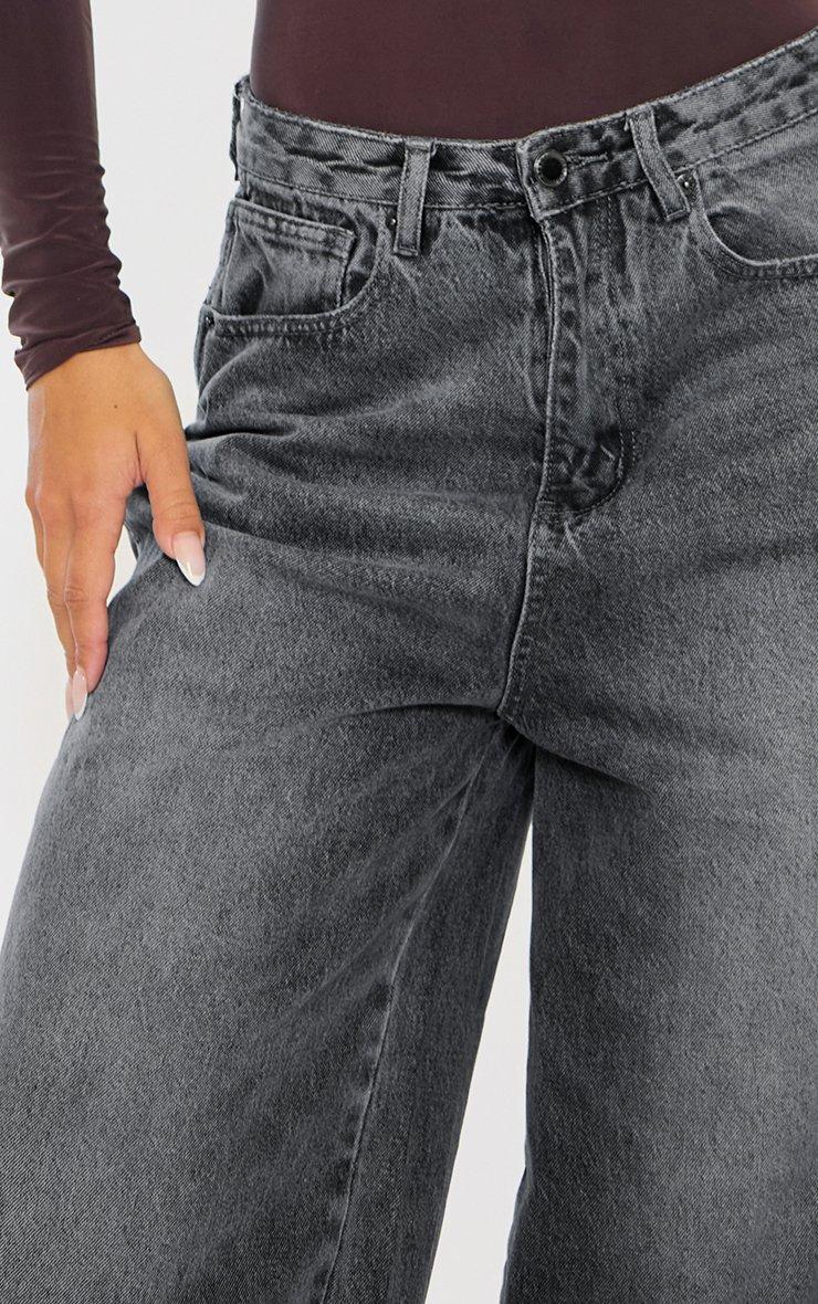 Low Rise Wide Leg Jeans In Washed Grey Denim