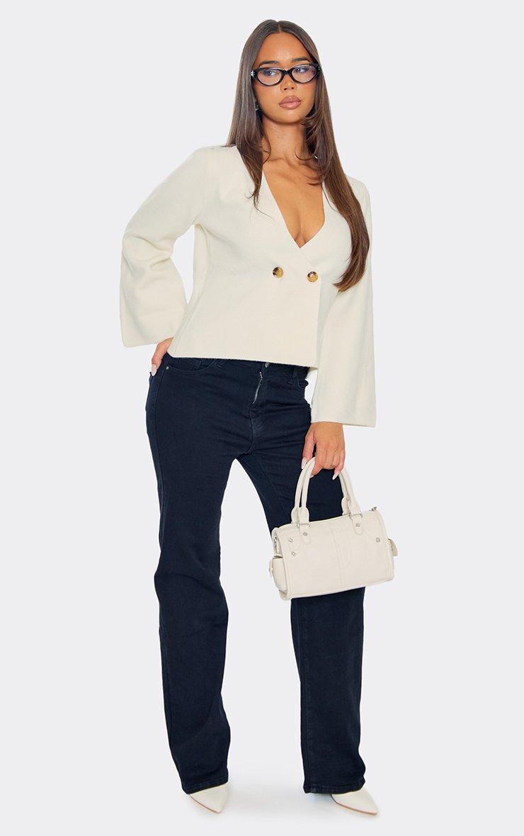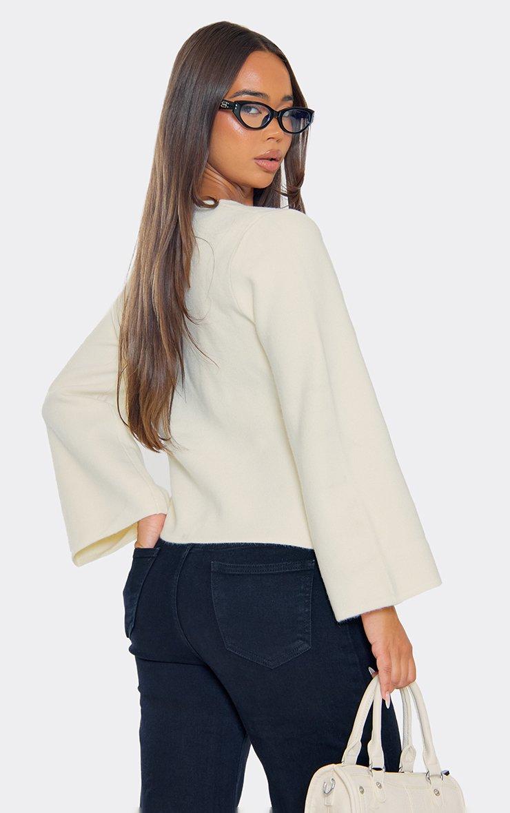 Long Sleeve Wrap Front Button Detail Cardigan In Cream Knit