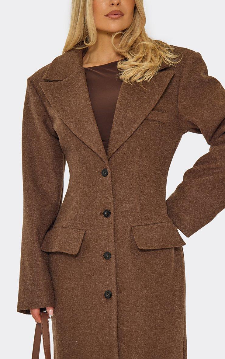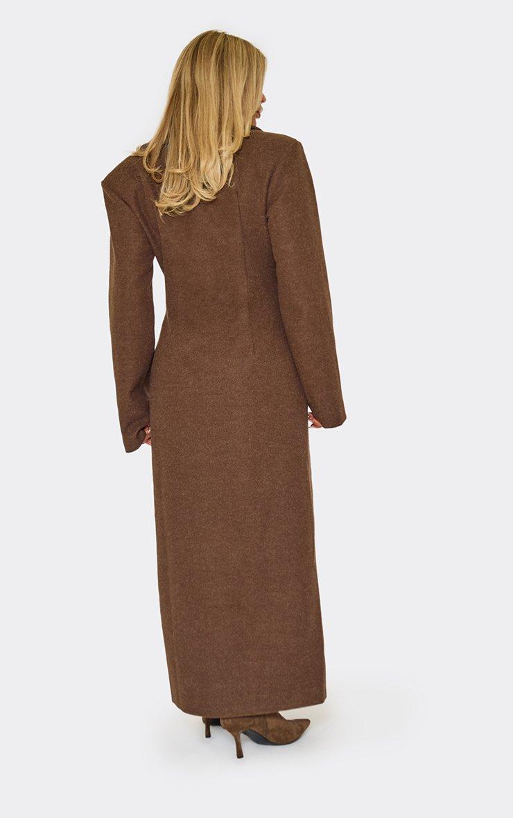 long sleeve cinched waist blazer wool look maxi coat in chocolate brown