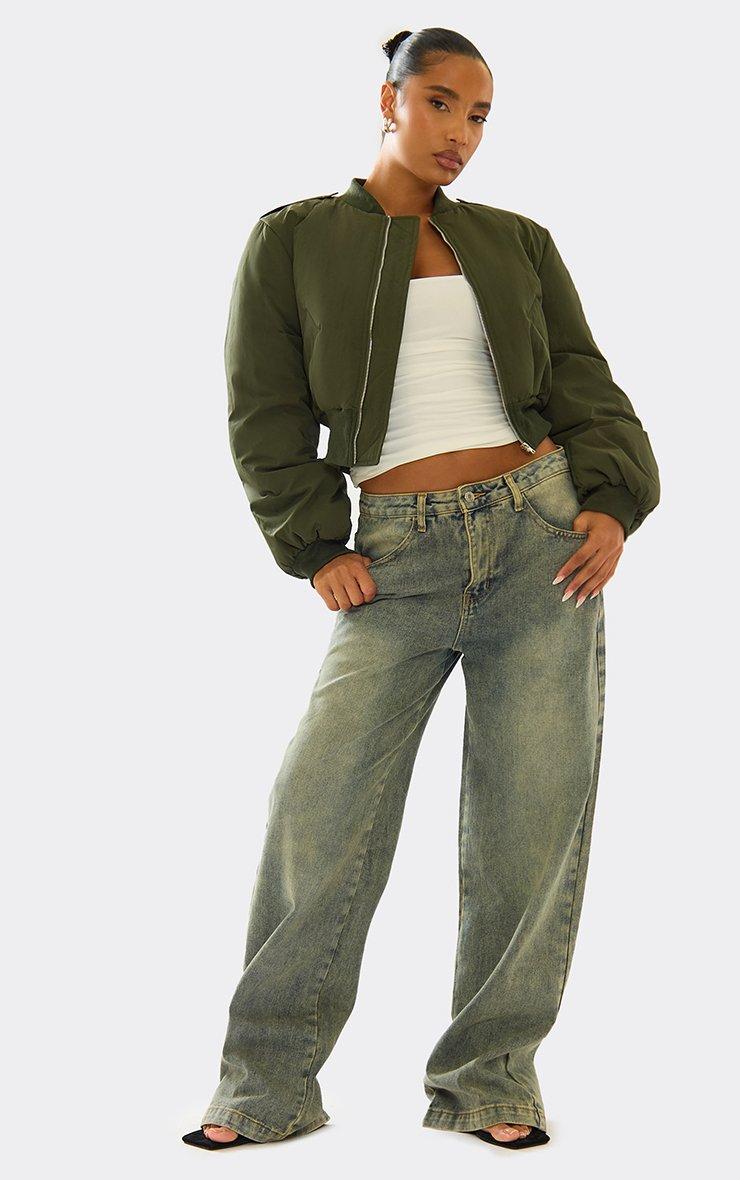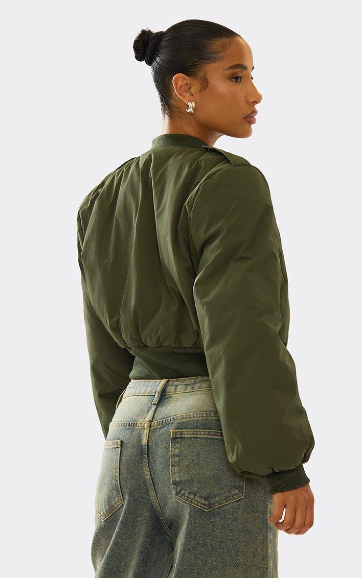 long sleeve oversized padded crop bomber jacket in khaki green