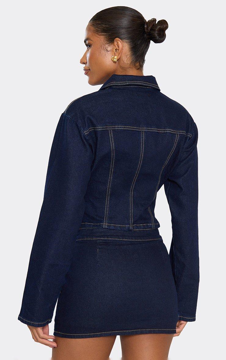 Long Sleeve Zip Down Oversized Jacket In Dark Indigo Denim
