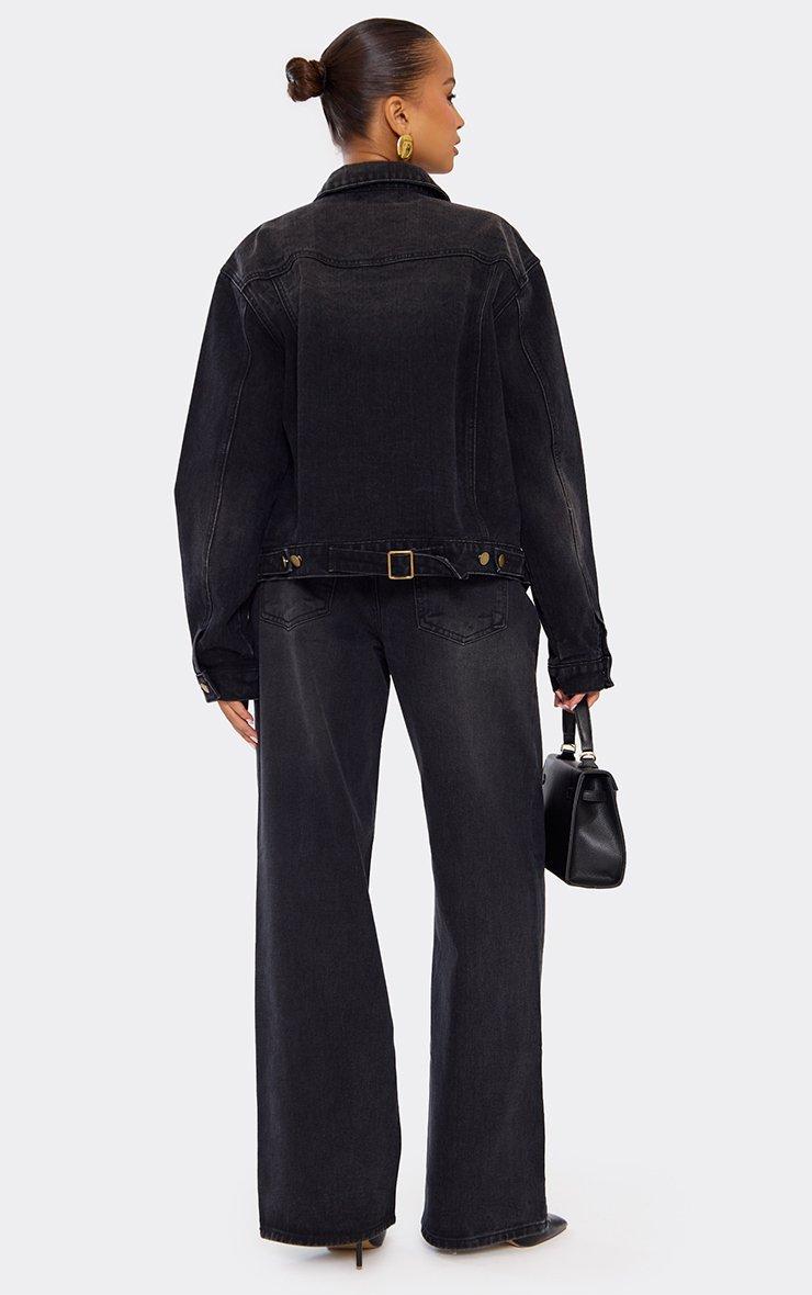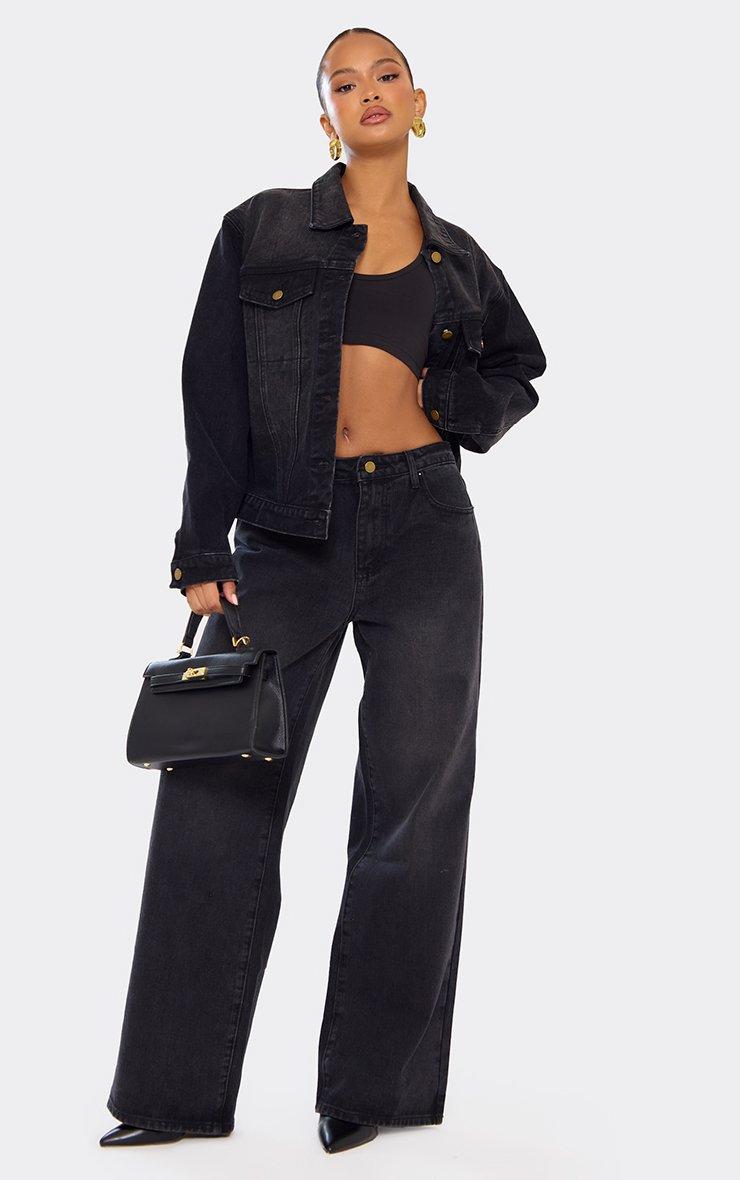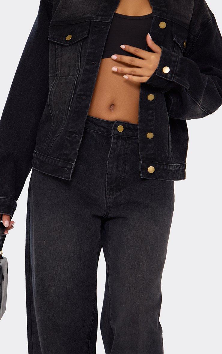 Mid Rise Wide Leg Jeans In Washed Black Denim