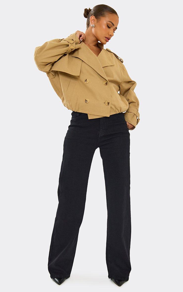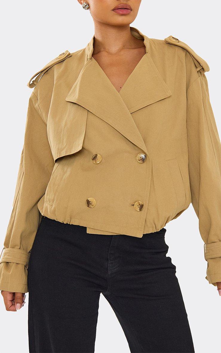 Long Sleeve Pocket Detail Cropped Trench Coat In Beige
