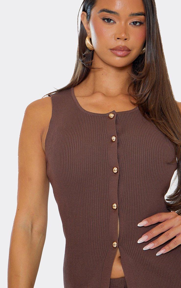Sleeveless Button Down Waistcoat In Chocolate Brown Knit