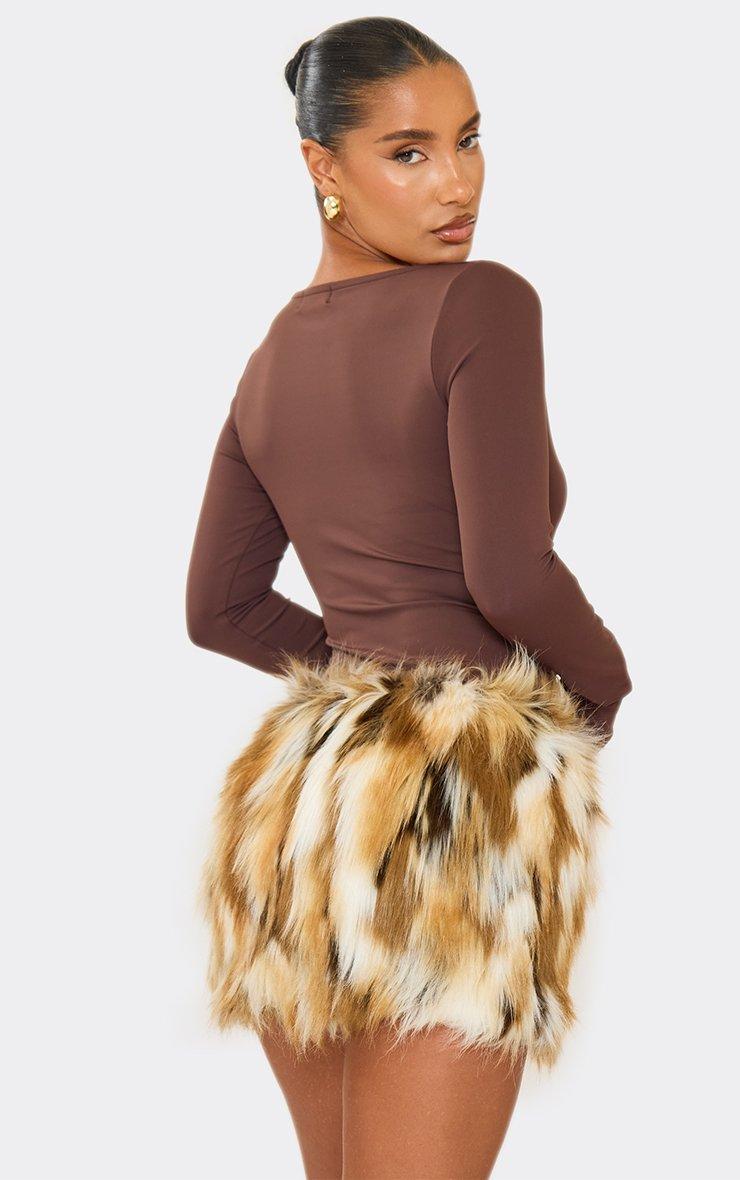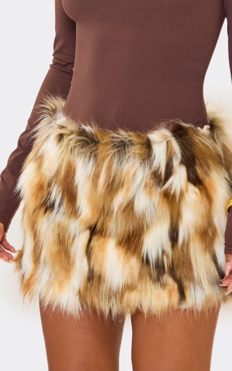 Mid Rise Mini Skirt In Brown Bambi Faux Fur