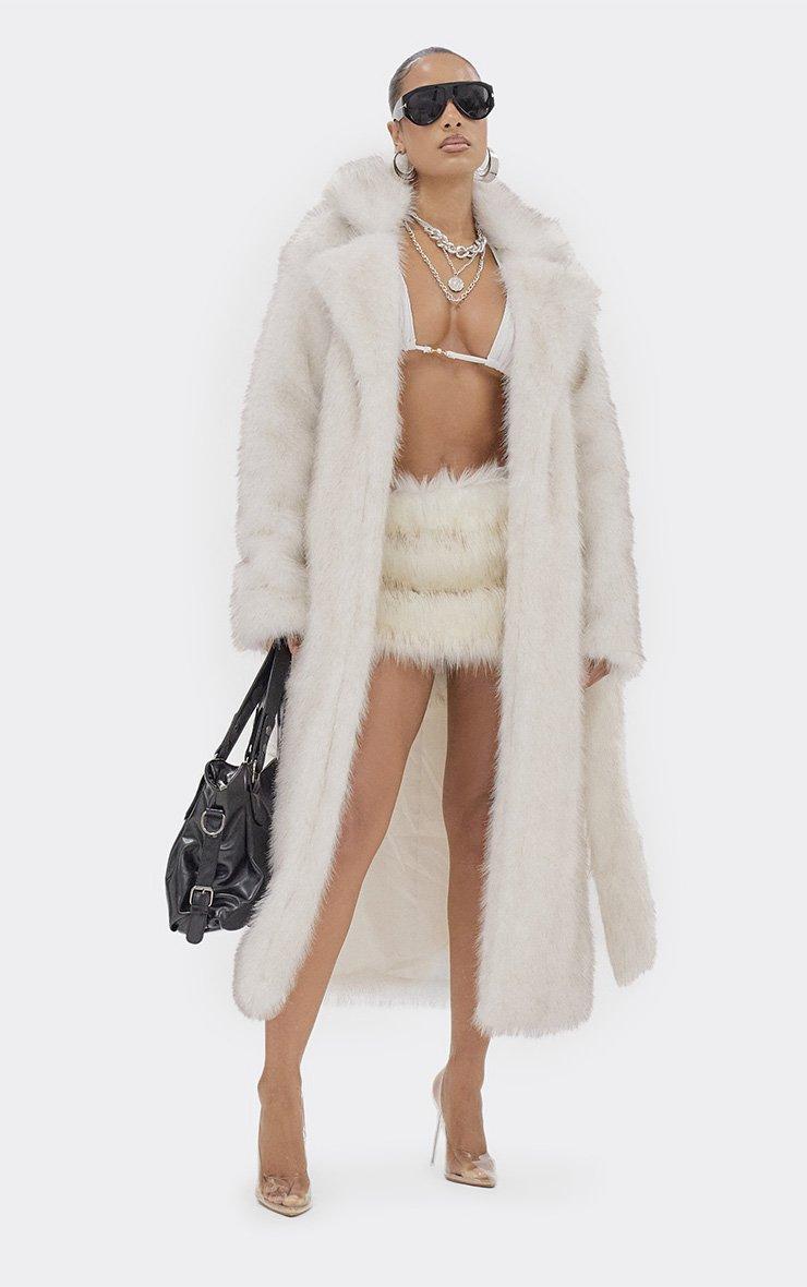 Mid Rise Feather Trim Detail Mini Skirt In White Sequin