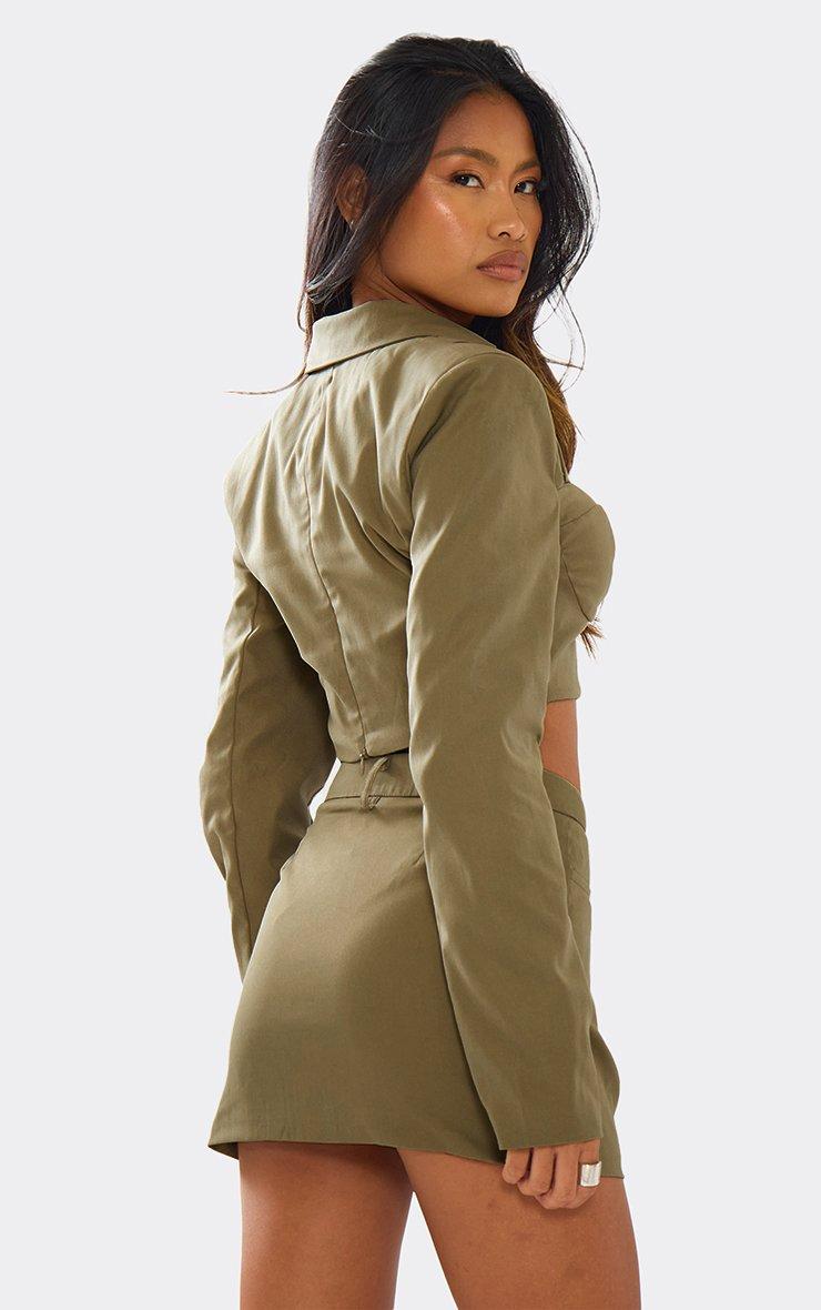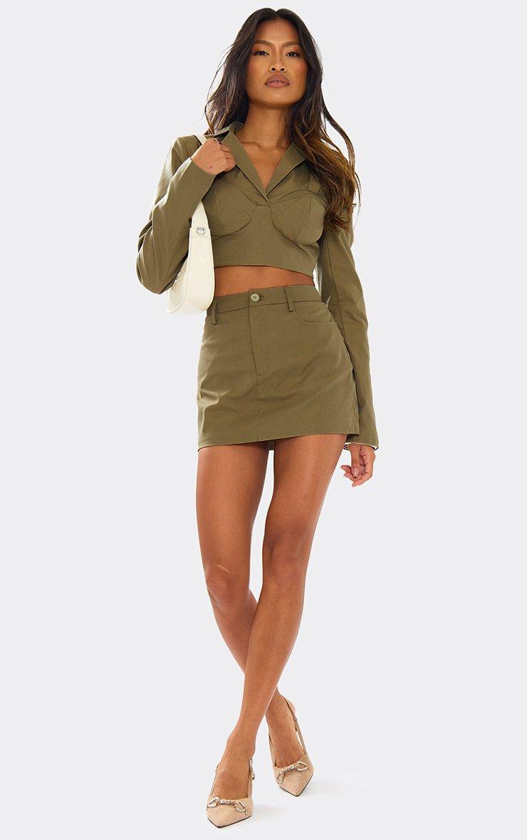 Mid Rise Shirred Waist Detail Mini Skirt In Khaki Green