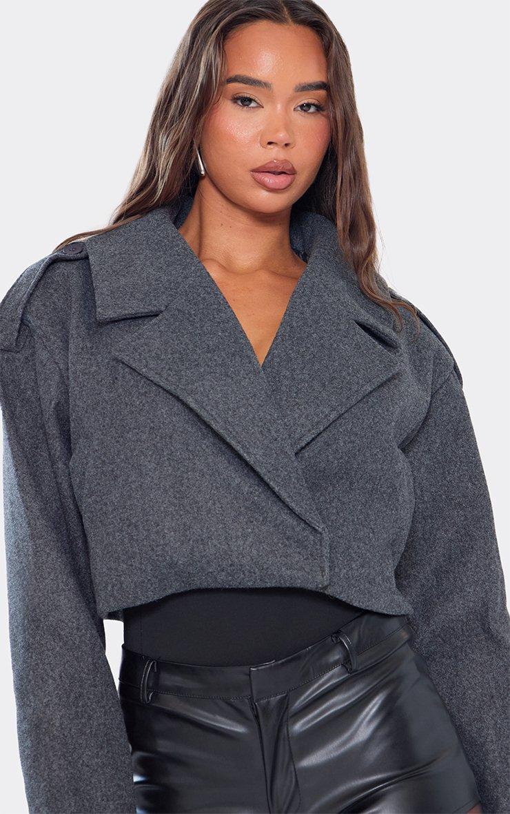 Cropped Trench Jacket In Grey Wool